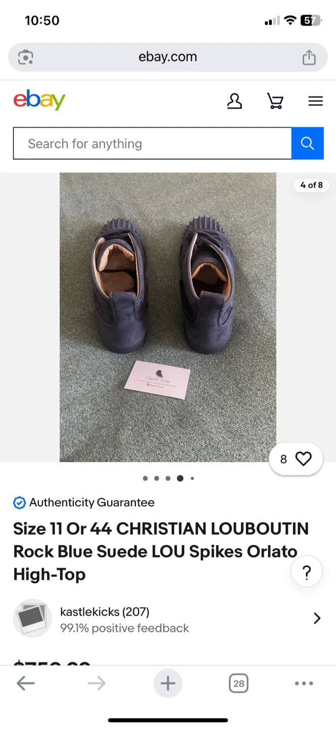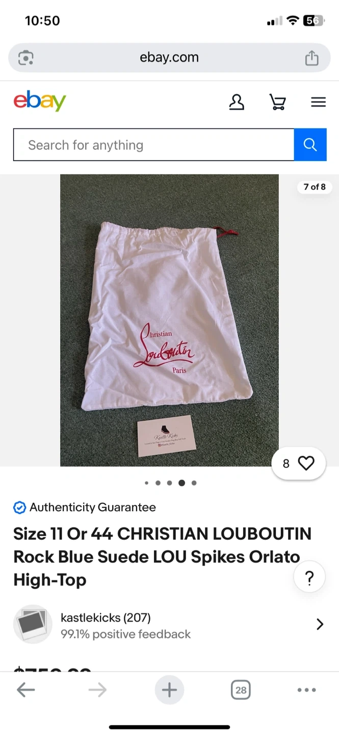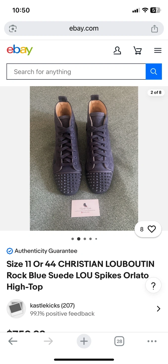 Selling a pair of Christian Louboutin Rock Blue Suede LOU Spikes Orlato High-Tops in size 11. These stylish high-tops feature a unique studded design and are made with high-quality suede. The iconic red soles add a touch of luxury to these eye-catching sneakers