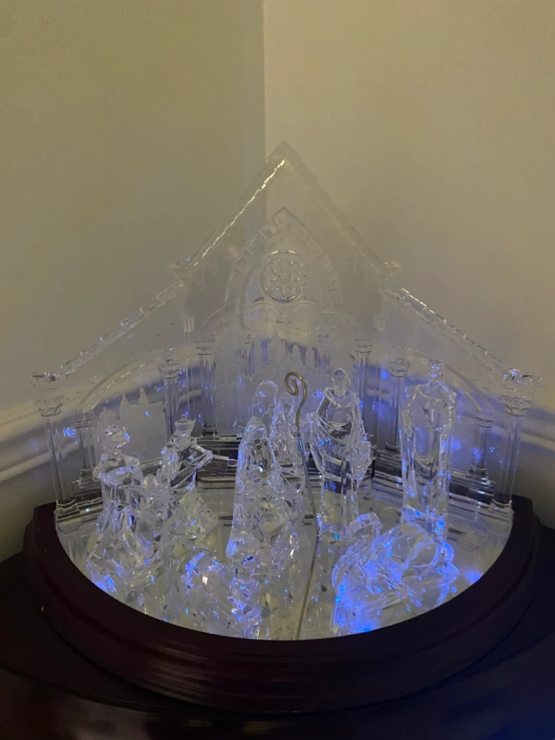 10Selling a beautiful acrylic nativity scene that adds a touch of elegance to any space. It features built-in LED lights that create a stunning display, especially in the evening. Perfect for the holidays or as a year-round decorative piece!