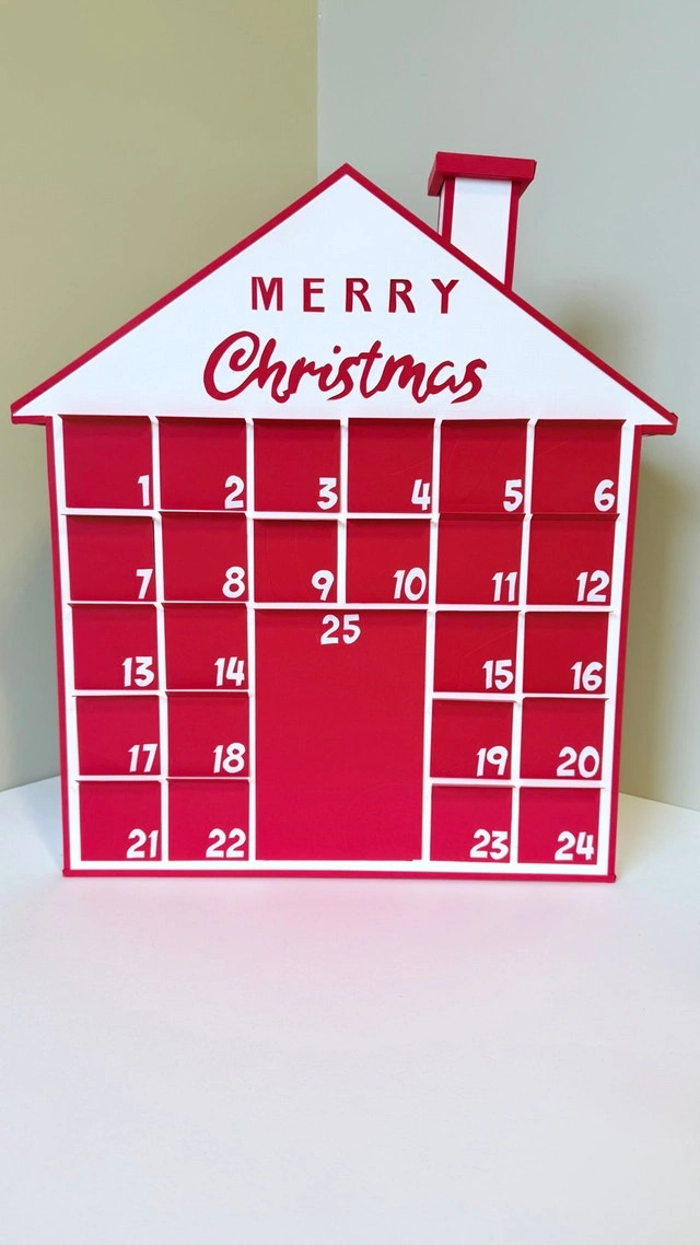14Add a touch of holiday magic to your home with this charming handcrafted cardboard Christmas advent calendar! This delightful house-shaped calendar is perfect for counting down the days until Christmas. Each of the 25 little drawers can be filled with treats, small toys, or notes to make the countdown even more exciting. This calendar is sure to become a cherished family tradition. Condition: Brand New