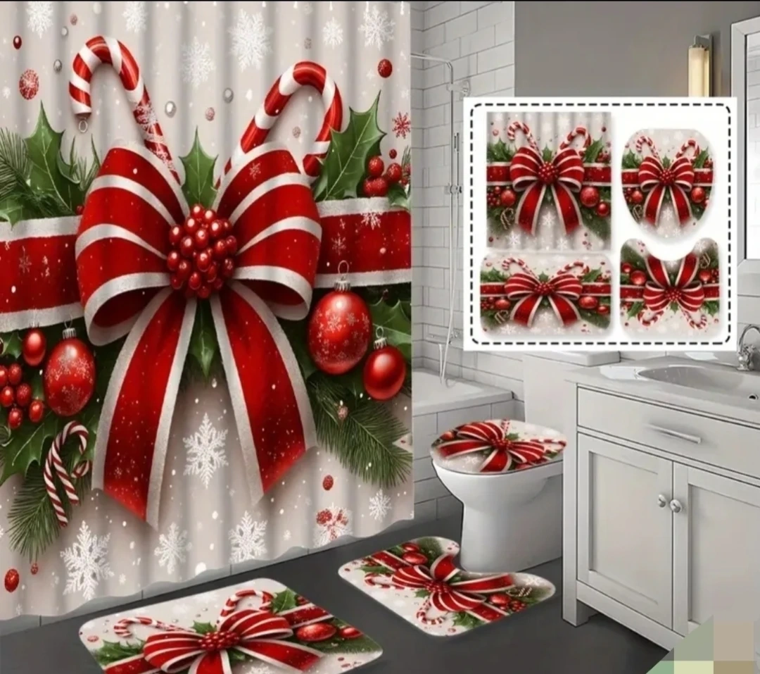 34Add a festive touch to your bathroom with this Christmas-themed set! It includes a shower curtain, toilet seat cover, and matching mats to bring holiday cheer to your home
