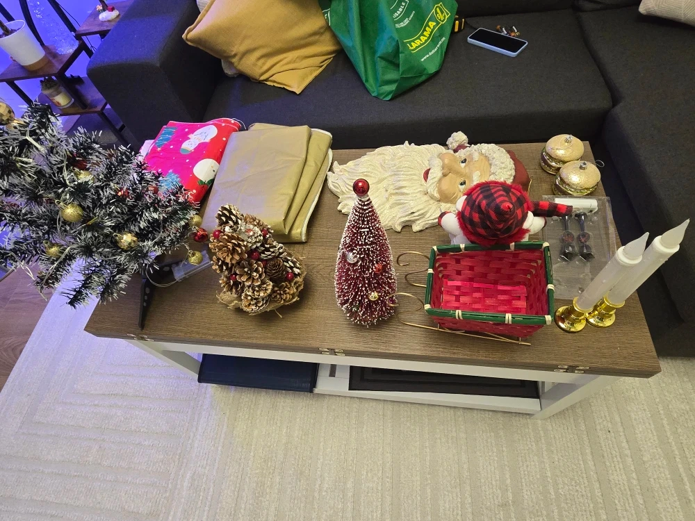 199Getting ready for the holidays? I'm selling a collection of Christmas decorations! Included are: - A Santa head decoration with some signs of use purchase for $19.98 (44 cm x 30) or (17 5" x 12") - Small tree with light in perfect condition was purchase for $49.90 (50cm x 30cm) or (20" x 12")) the package inckudez are more usefull thing to decorate your space the two articles mentioned come with other Christmas decorations; whatever you see on the table is include.