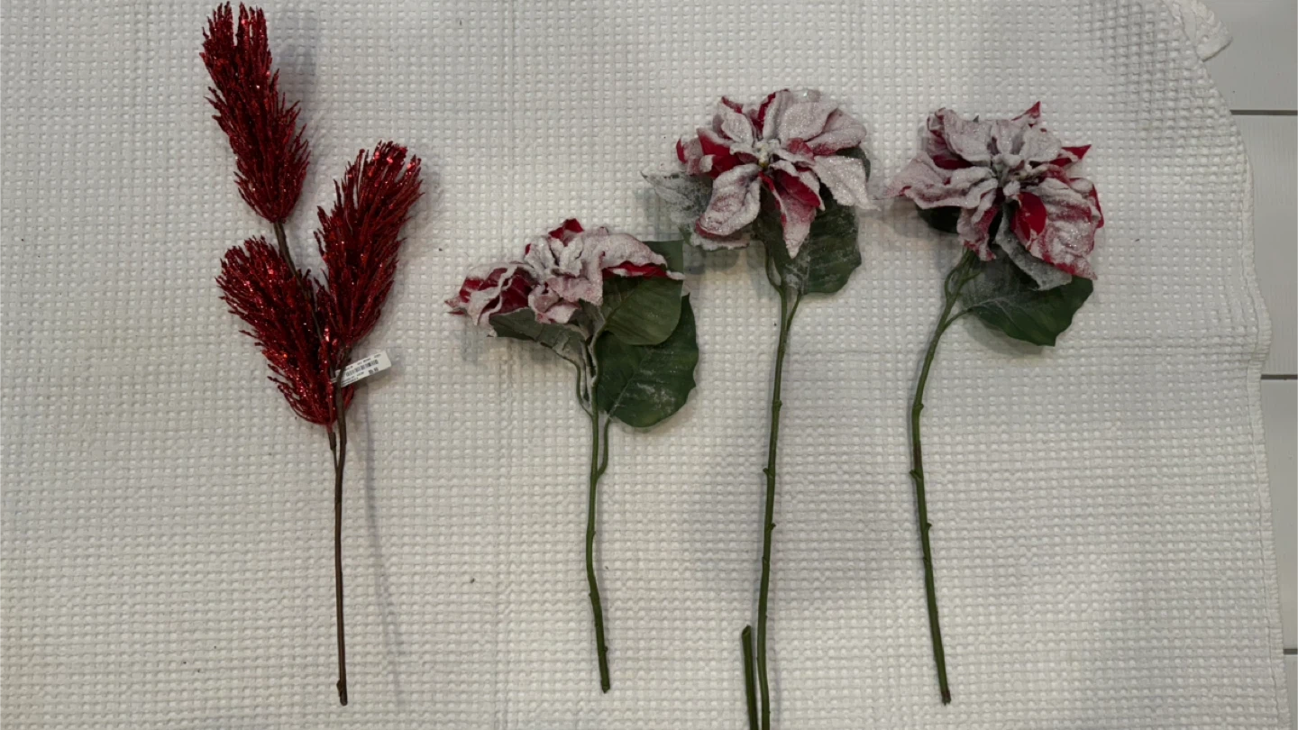 86Selling a lovely Christmas floral arrangement. Perfect for adding a festive touch to your home this holiday season! $1 a piece or $5 for the whole thing. Vase not included