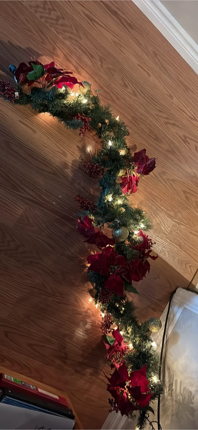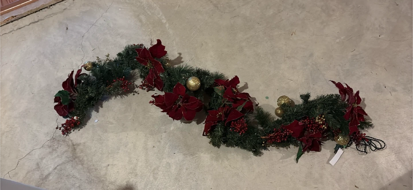 1136 ft lighted Christmas garland, in excellent condition, adding a festive touch to your home, features beautiful poinsettias, decorative balls and soft lights for your Christmas decor during the holiday season..* pick up in Chicopee are of south Kitchener N2A4H8