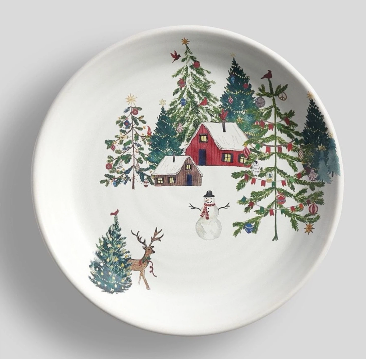 With the look of painted watercolour, these stoneware plates capture the nostalgia of the holiday countryside. Detailed without being busy, they have a sweet, subtle nature that mixes and matches with other pieces for a festive table setting. Perfect for layering, these salad plates lend a cheery design to a well-styled setting. Crafted of stoneware with reactive glaze. Set of 4. Oven safe up to 425° F. Imported. Dishwasher, oven and microwave safe. While dishes are oven and microwave safe, they may become hot. Handle carefully.