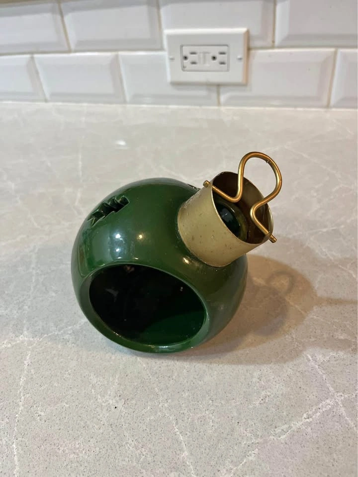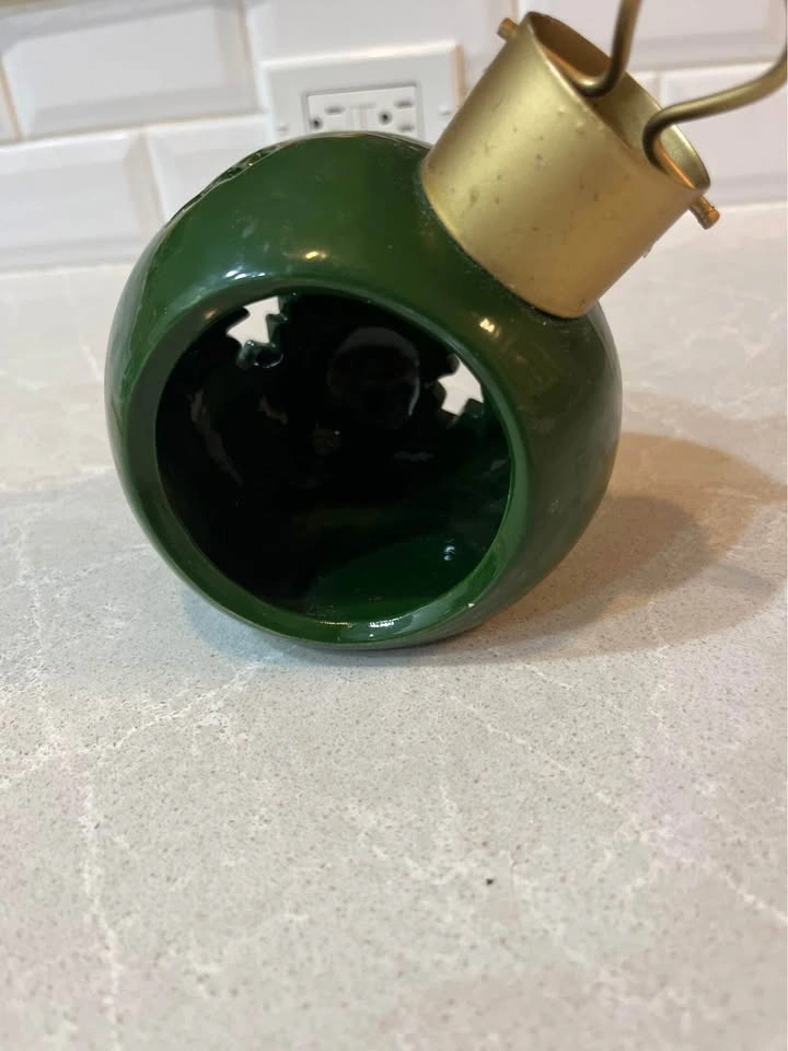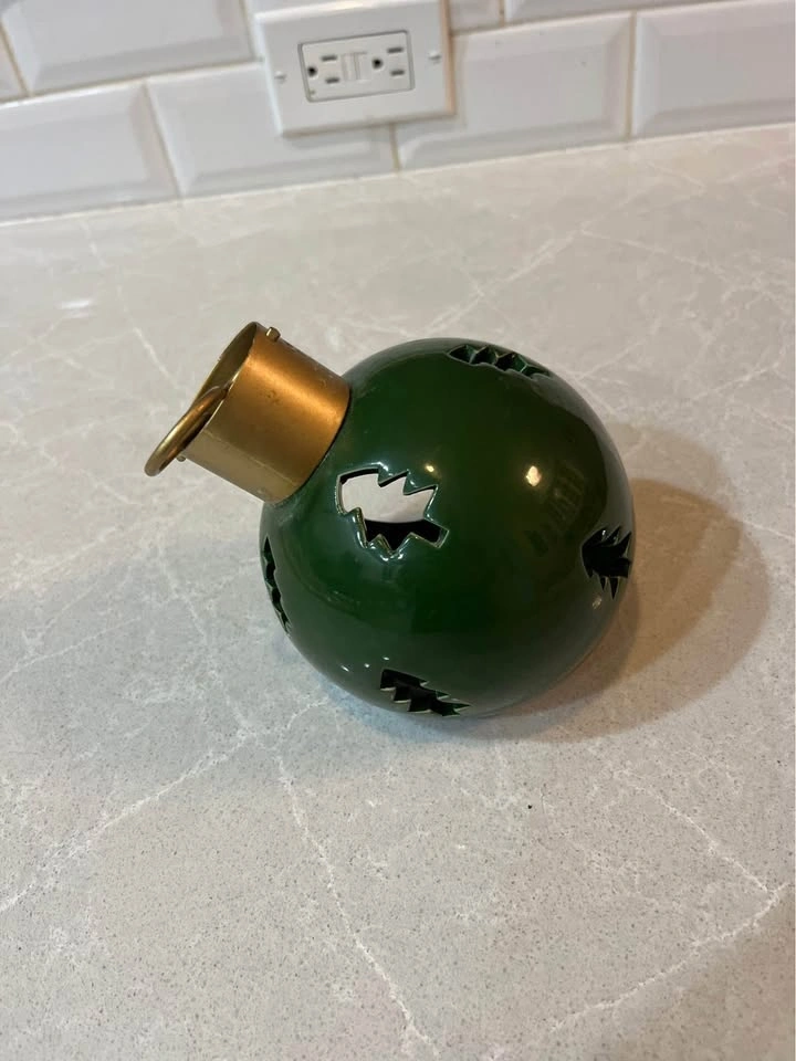 Christmas ornament shaped candle holder, about 5” tall.