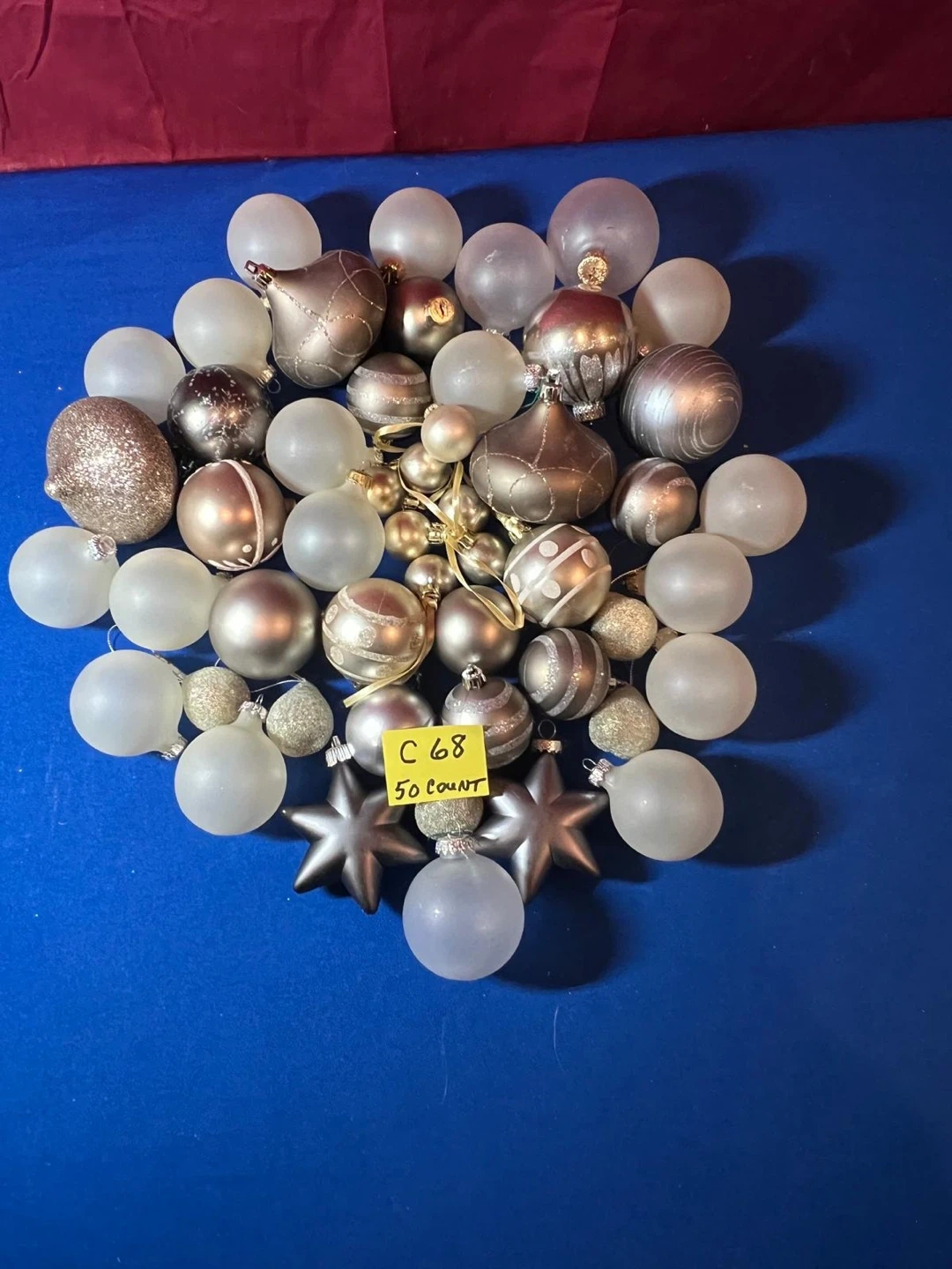 10New - Selling a group of 50 Christmas ornaments in a variety of designs and sizes! They are new, but no box. They are silver, gold and white. Non Smoking, Pet friendly home. (Numbers are for seller’s purpose) Cross Posted, No returns (*Please see my page for other items and/or designs. Thanks!😊)