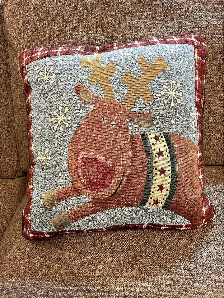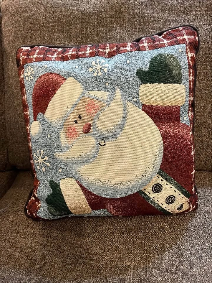 10Christmas pillow with Santa and Rudolph. About 15”x15”.