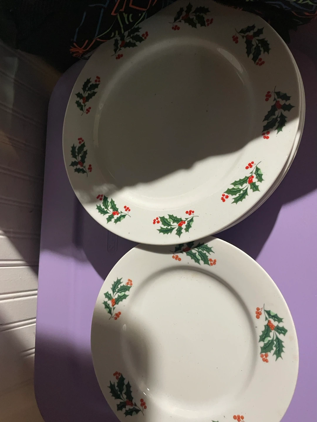 Selling a set of vintage plates with a cute holly berry design around the rim. They're perfect for adding a festive touch to your table setting during the holidays or any time of year! They're in great condition and ready for a new home ๐ฅ