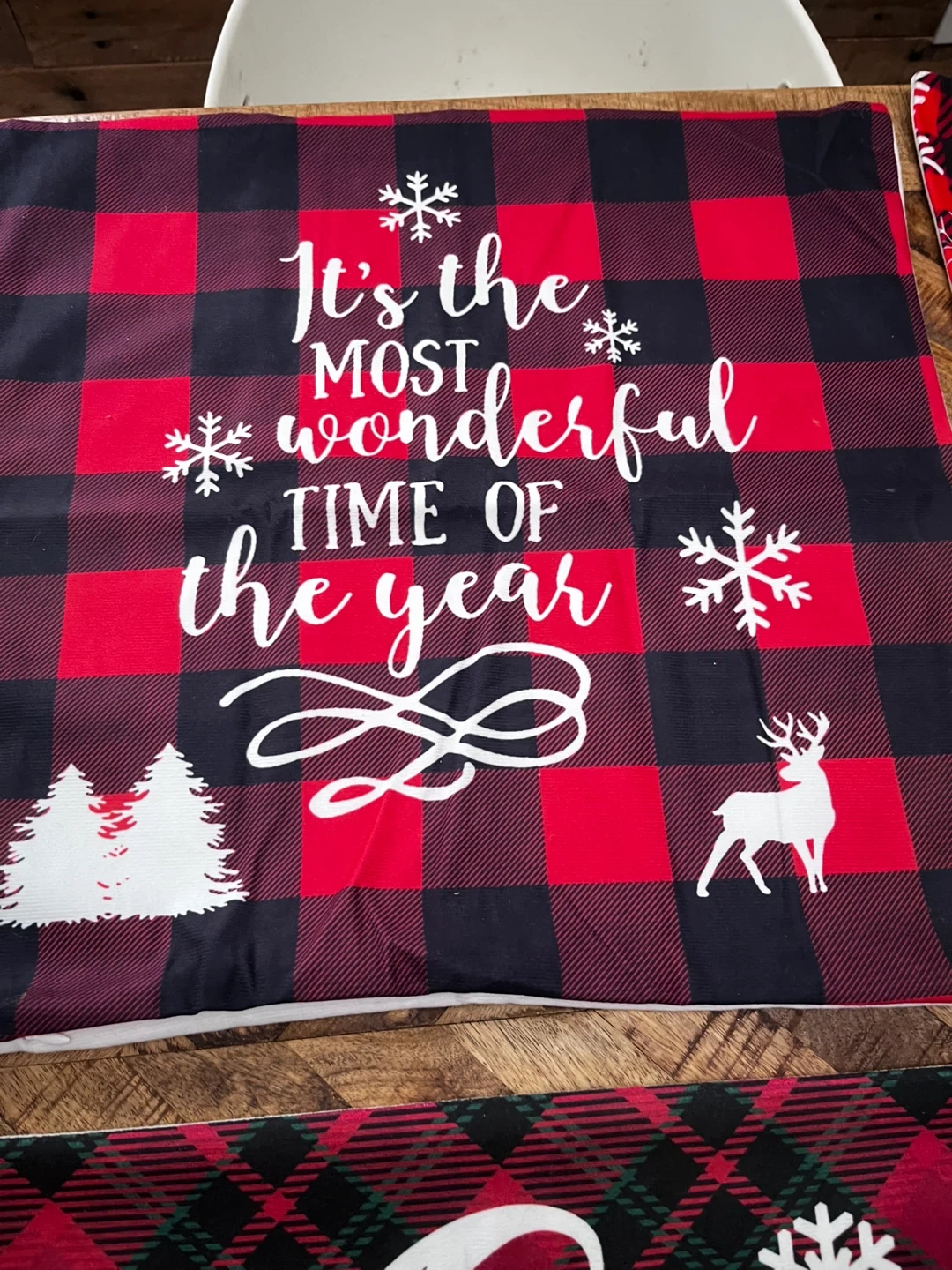 771Add some festive cheer to your home with these adorable Christmas-themed pillow covers! They feature fun designs like snowflakes, buffalo plaid, and cute holiday sayings. Perfect for adding a cozy touch to your living room or bedroom this holiday season. Measures 17”x 17” $5 each Pick up only. Closest intersection is Jane St and Eglinton ave.