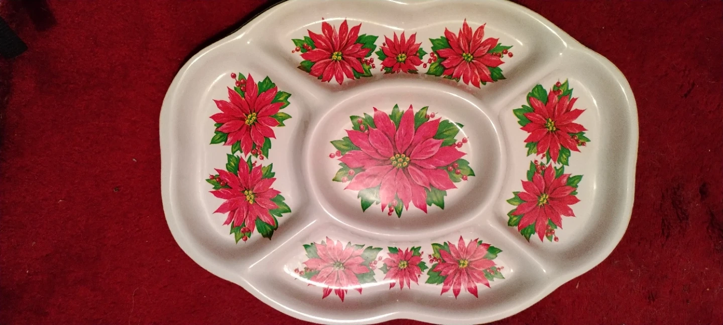 20Selling a set of Christmas themed divided serving trays. Perfect for holiday gatherings and festive snacks! They feature classic Christmas decorations like poinsettias, Christmas trees, and bells. Great for serving appetizers or desserts during the holiday season I like 20 for all of them