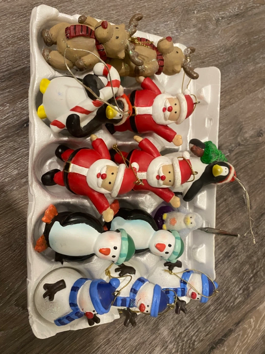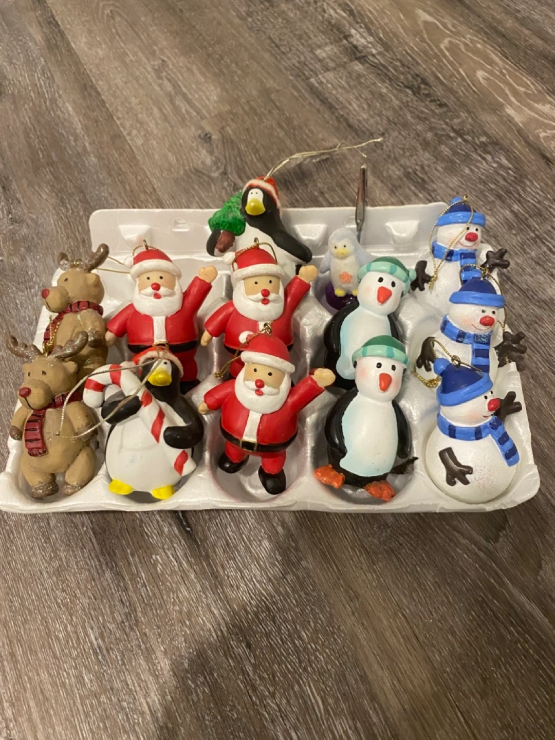 Selling a set of cute Christmas tree ornaments! Includes Santa, reindeer, snowmen, and penguin designs. Perfect for adding some holiday cheer to your tree or decorations Pick up Sage Hill NW Cash only Check out my other items Pet and smoke free home