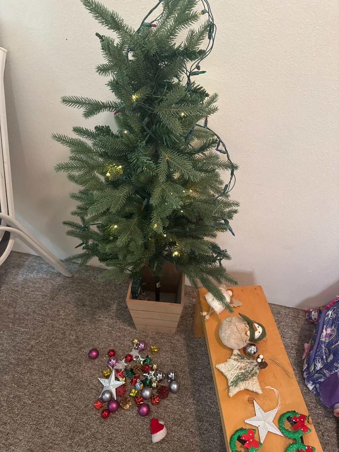 70Selling a cute little Christmas tree that comes with a bunch of colourful ornaments! It's perfect for adding some festive cheer to a smaller space or as an extra tree for the kids' room