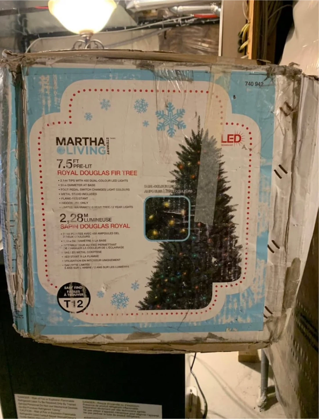 10Selling a 7.5 ft Martha Stewart Living Royal Douglas Fir Tree. It's a pre-lit tree with 450 dual-colour LED lights. The tree is 2.28m tall and comes with a metal stand. It's in good condition and comes in the original box