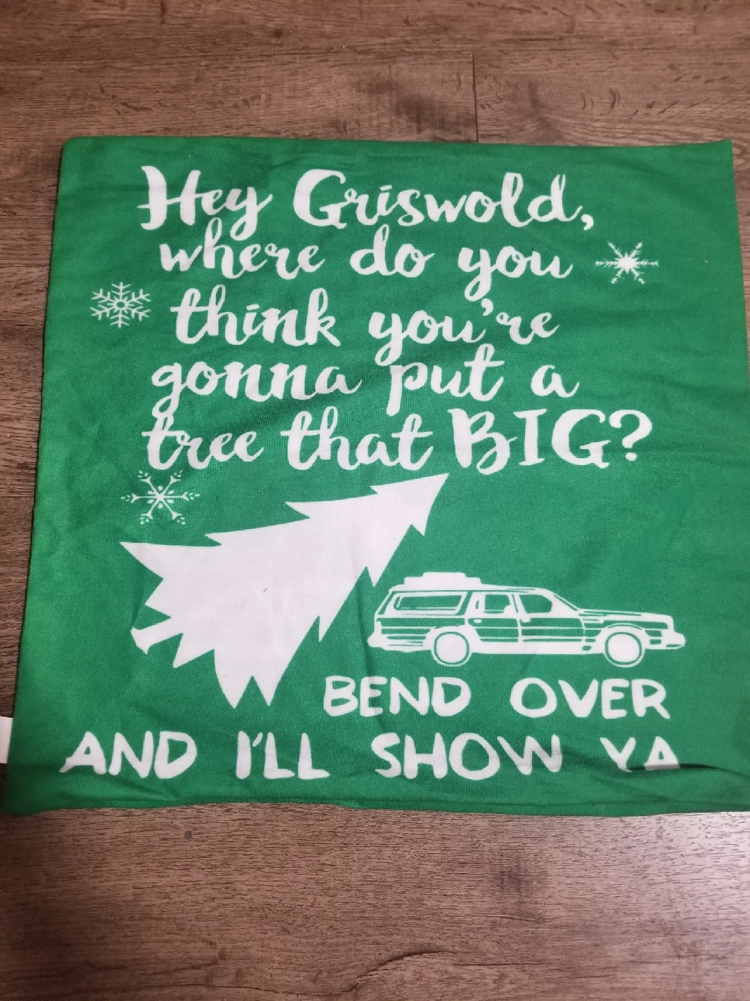 240Hey Griswold, where do you think you're gonna put a tree that BIG? This festive green pillow cover features a quote from the classic movie, National Lampoon's Christmas Vacation! Brand new