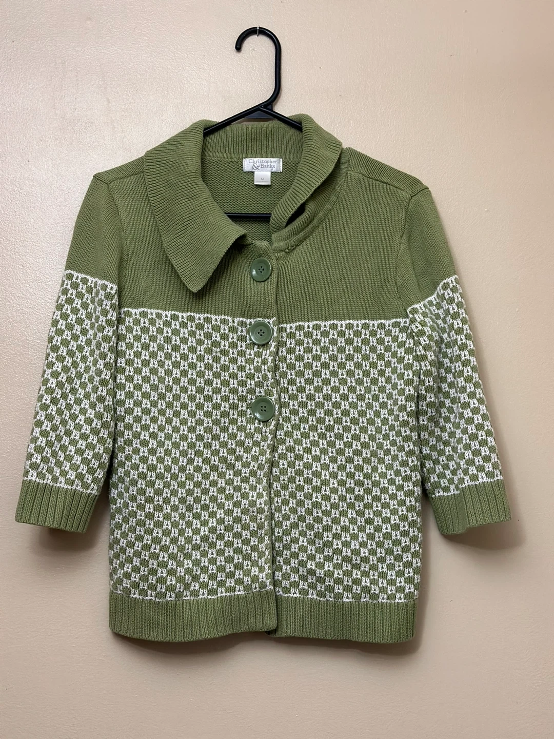 Christopher & Banks Medium Green & White Sweater. Pick up from smoke free home near Morningstar Drive (Mississauga) & Humberwood Blvd (Toronto) in Malton. Willing to meet at 4369 Brandon Gate Dr, Mississauga with enough notice. {cash only, no e-transfers please} **Check out my other listings & follow me for more items.** X posted