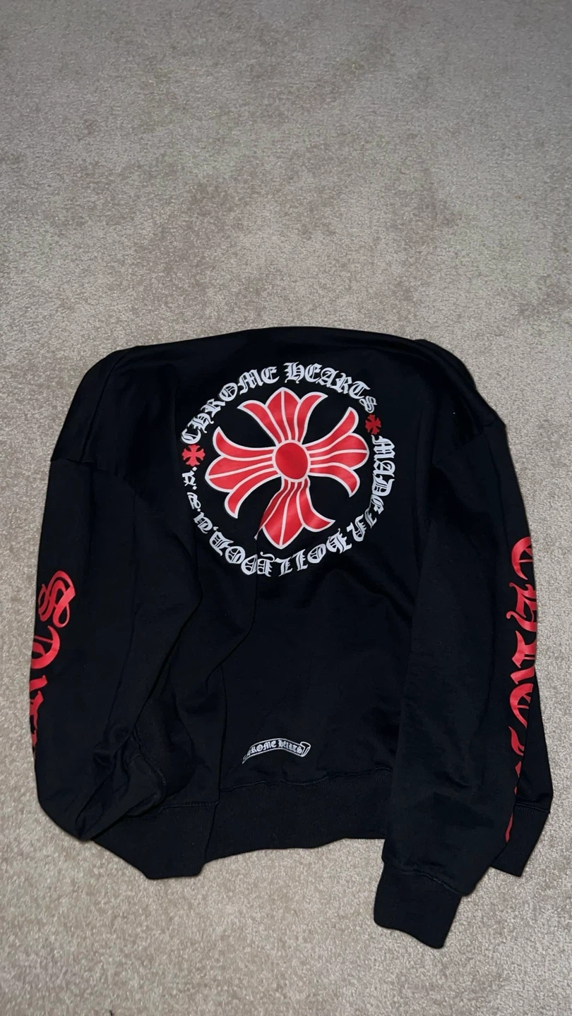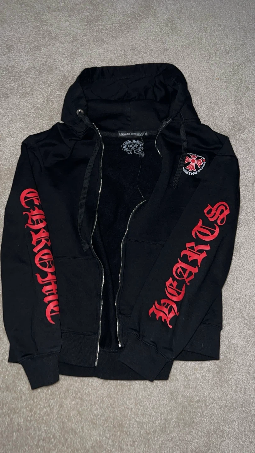 Selling a Chrome Hearts black hoodie. It features the iconic cross logo on the back and sleeves. Great for adding a touch of edgy style to your wardrobe