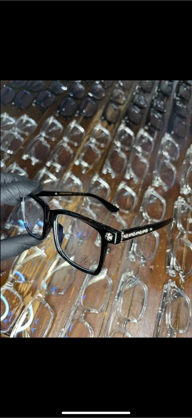 10Selling a pair of Chrome Hearts eyeglasses. They have a distinct design with the Chrome Hearts logo on the side. Great condition!