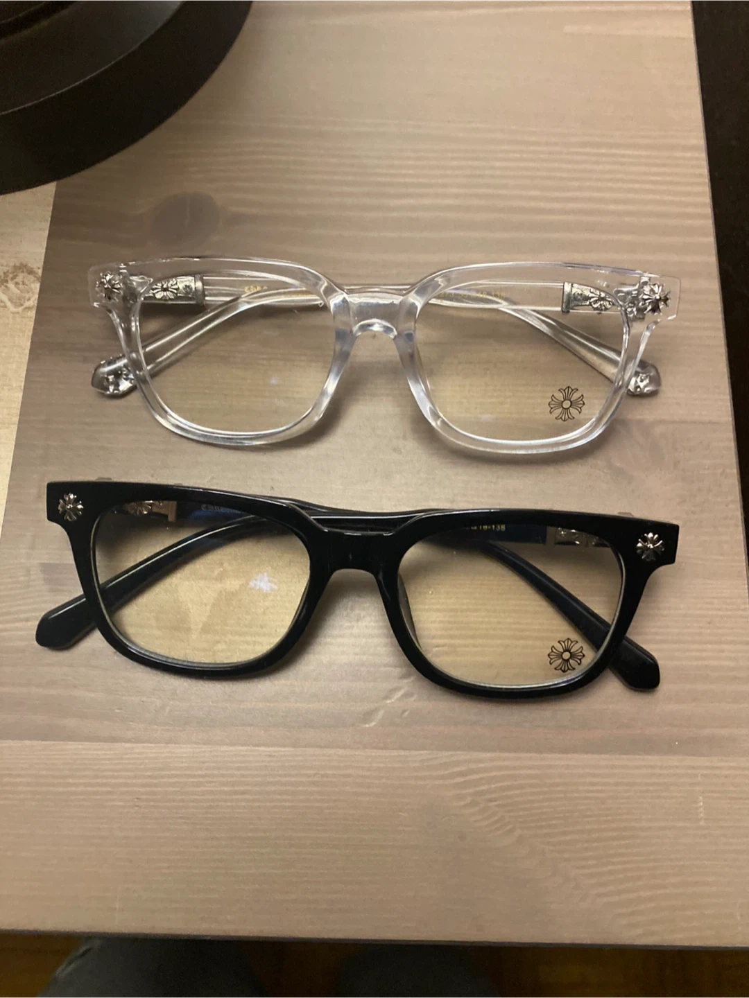 10Selling two pairs of Chrome Hearts eyeglasses! One has a sleek black frame, and the other has a clear frame. Both are in great condition and ready for a new home. Stylish and iconic!