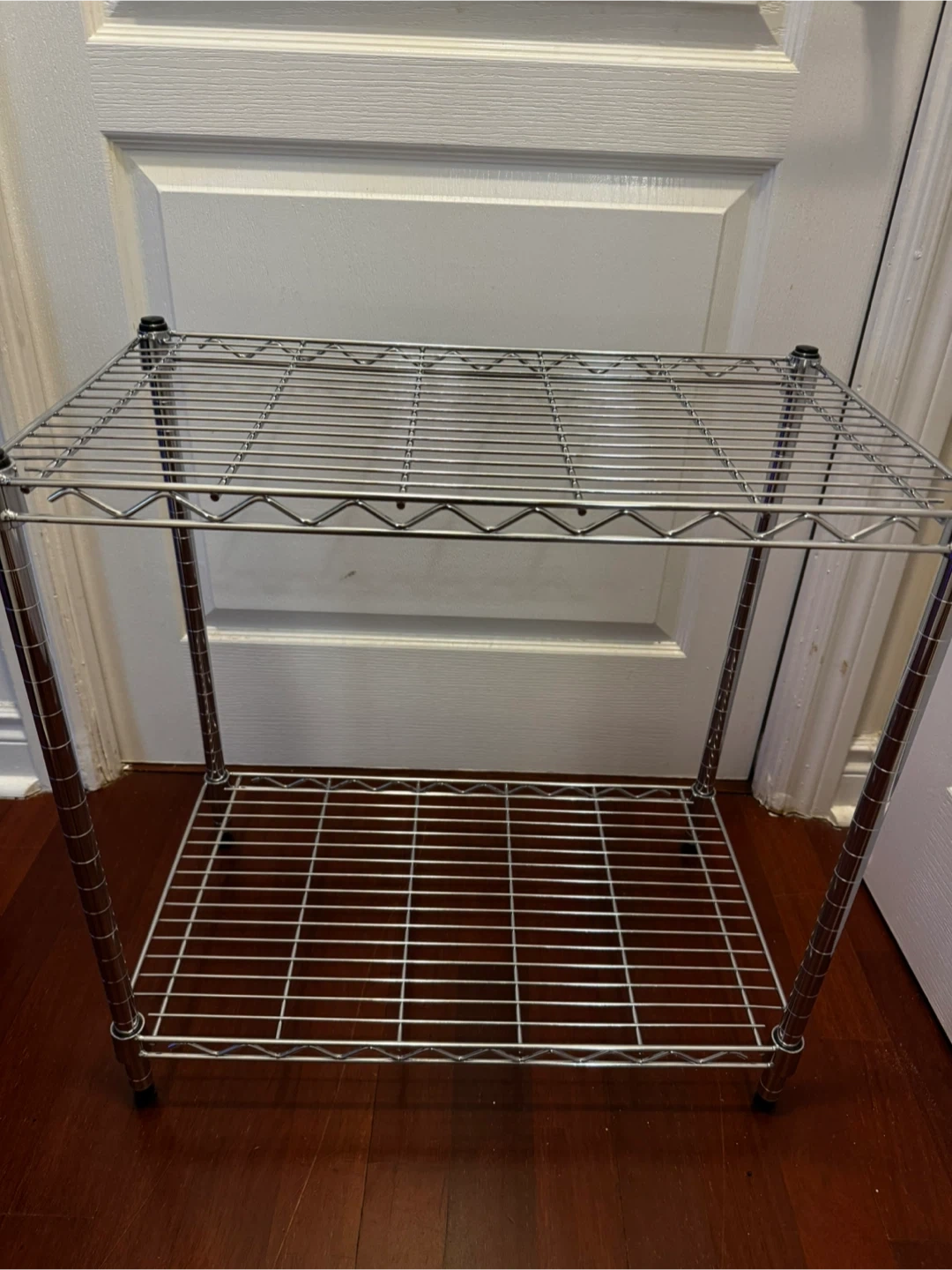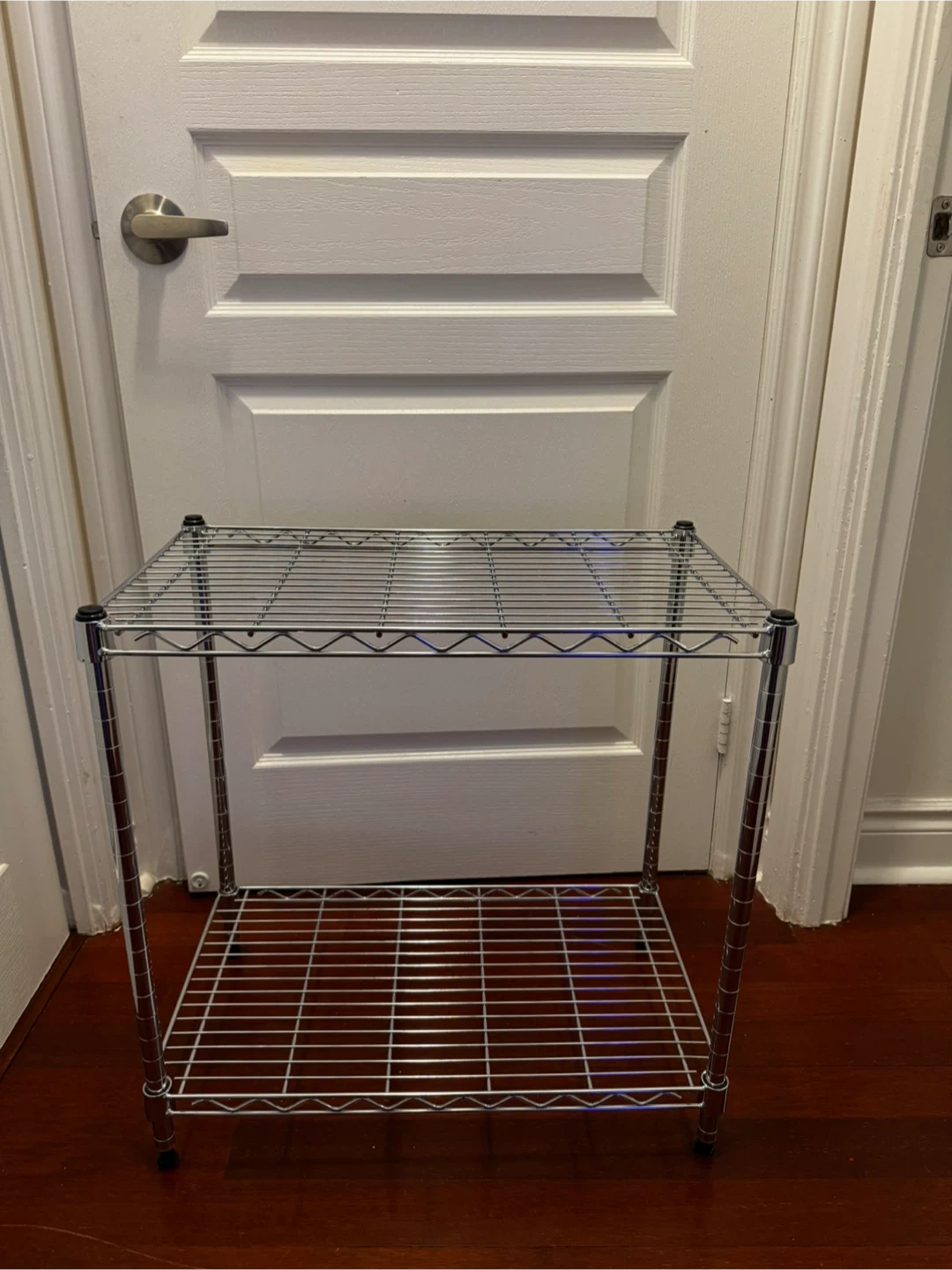 555Selling a handy chrome metal shelf with two tiers! It's perfect for adding some extra storage space in a small area. It's in great shape and ready for a new home 22x12 H 23 inches $20 Yonge and finch area