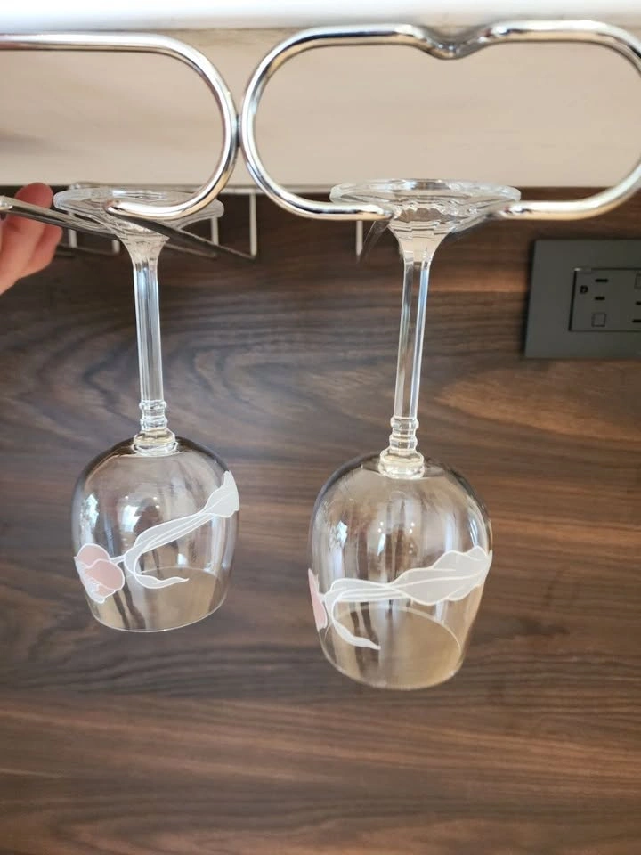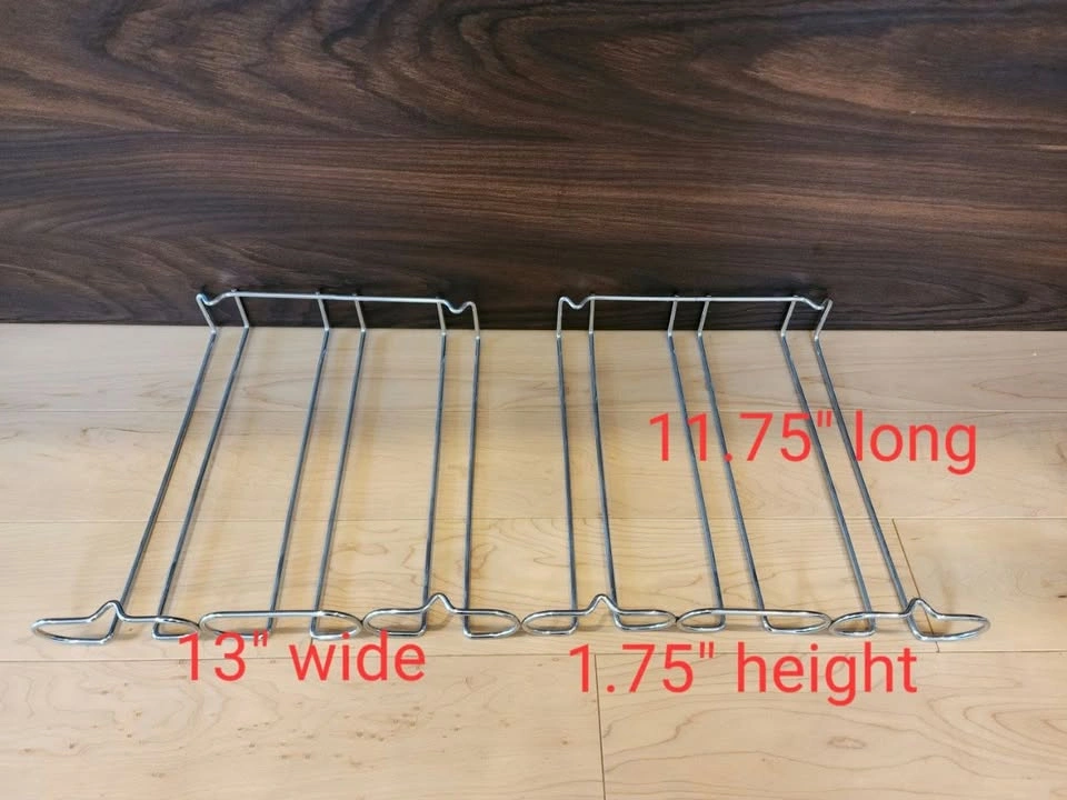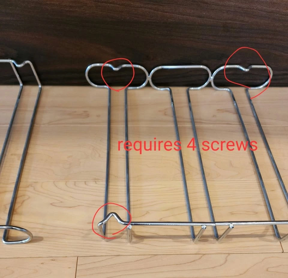 shelf organizers /Rack set for wine glasses Under-cabinet wine glass rack. Holds multiple glasses. Chrome finish. Measures 13" wide, 11.75" long, and 1.75" high. Requires four screws for installation. pick up in beechwood set of two
