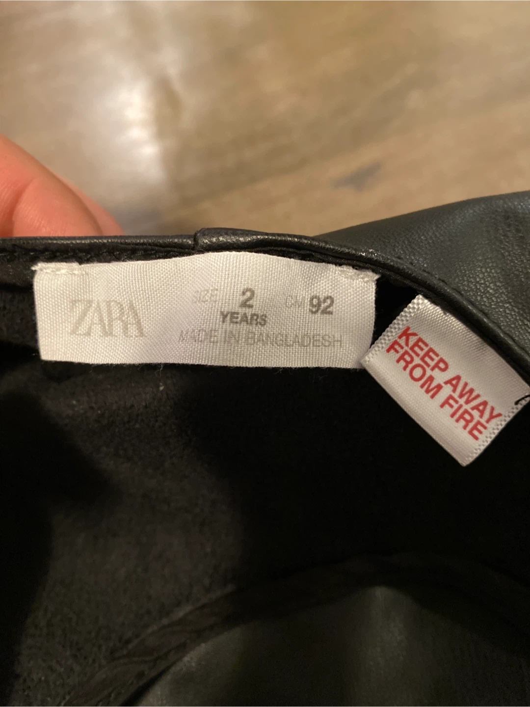 This black faux leather dress from Zara features cute flower embellishments. It's a size 2 years, measuring 92 cm. Perfect for toddlers, this dress is great for parties or special occasions!