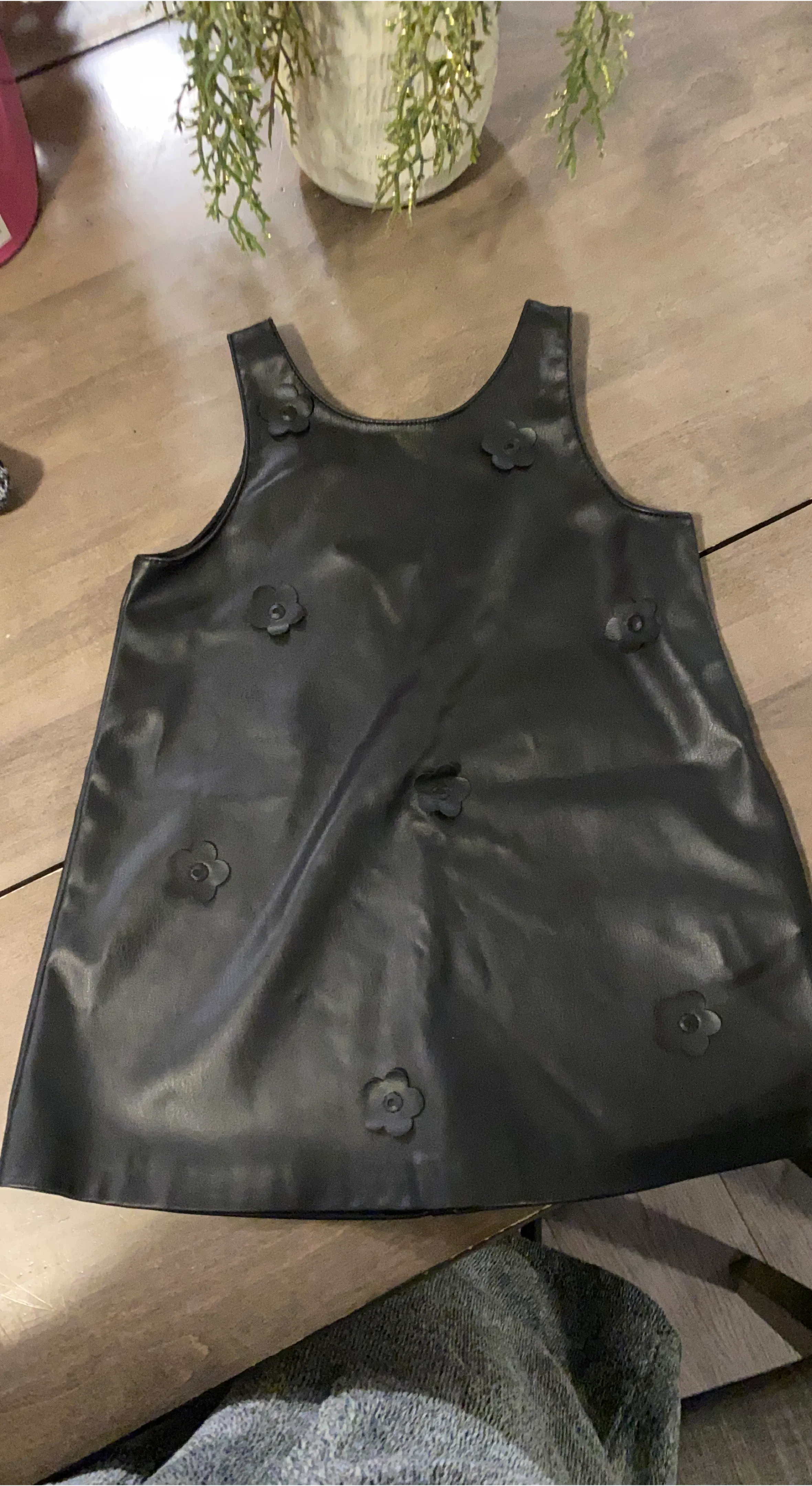 Zara Black Faux Leather Dress with Flower Details - Size 2 Years