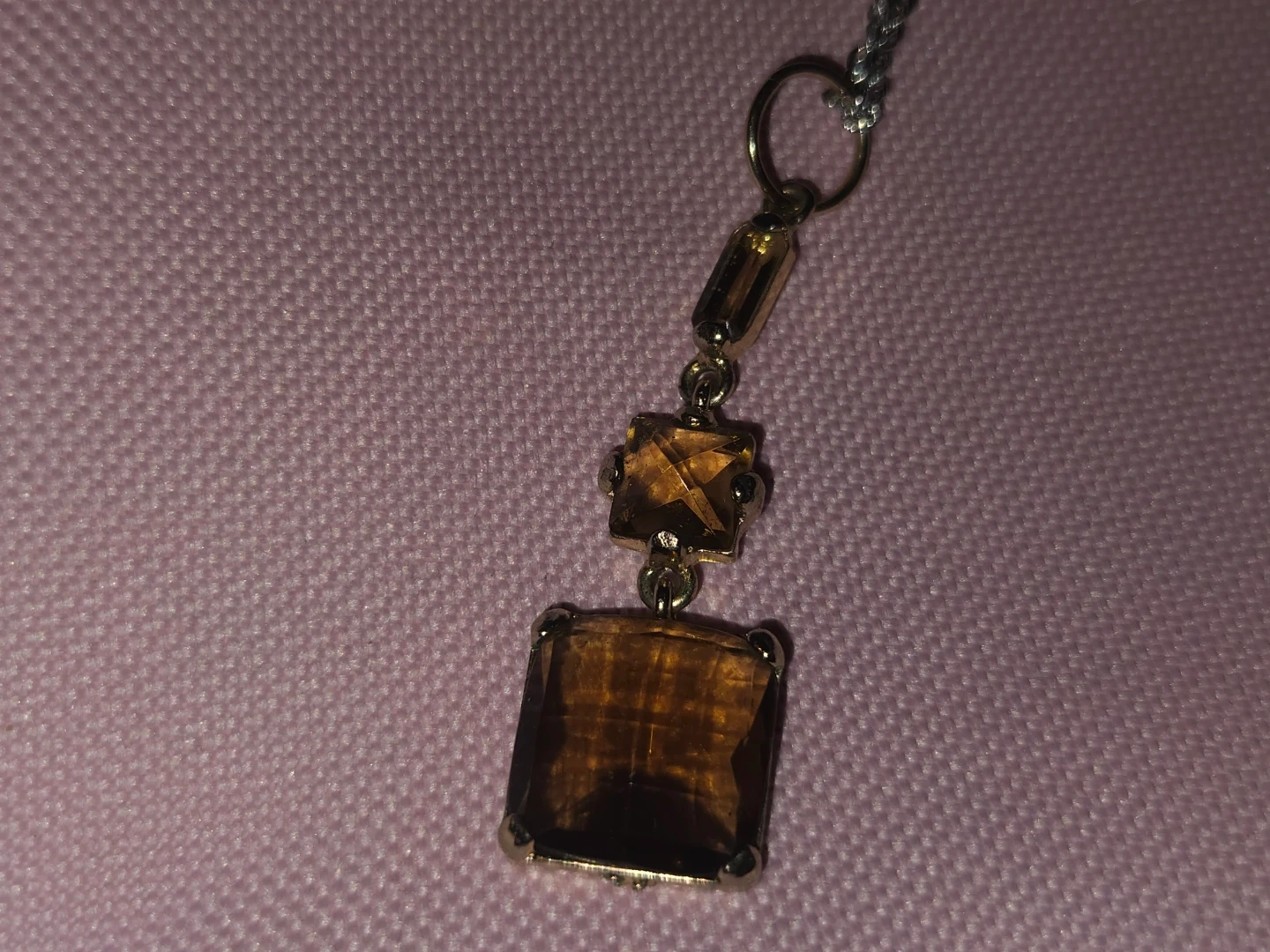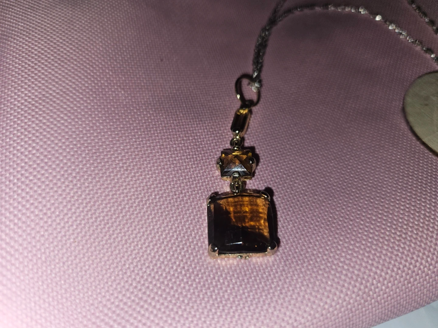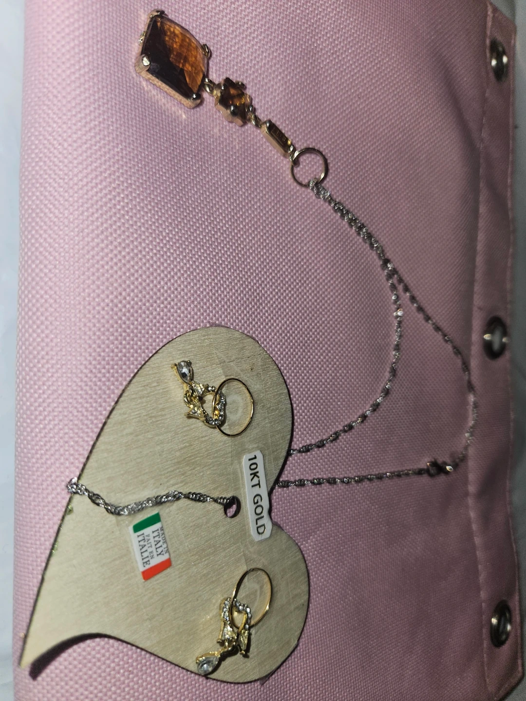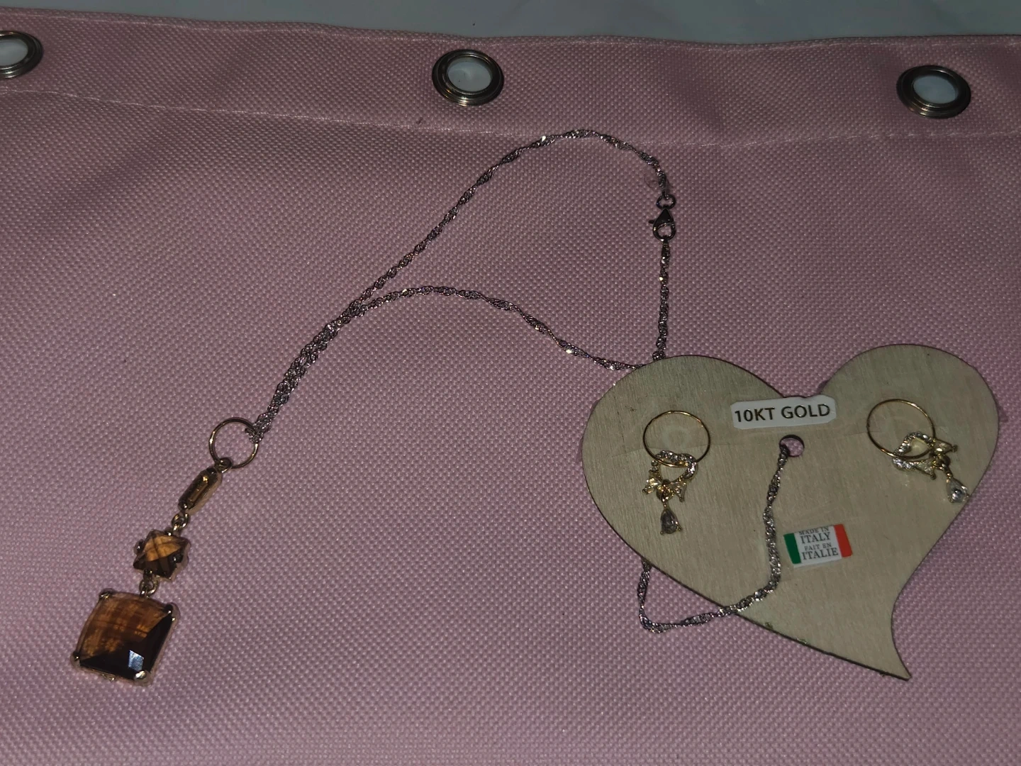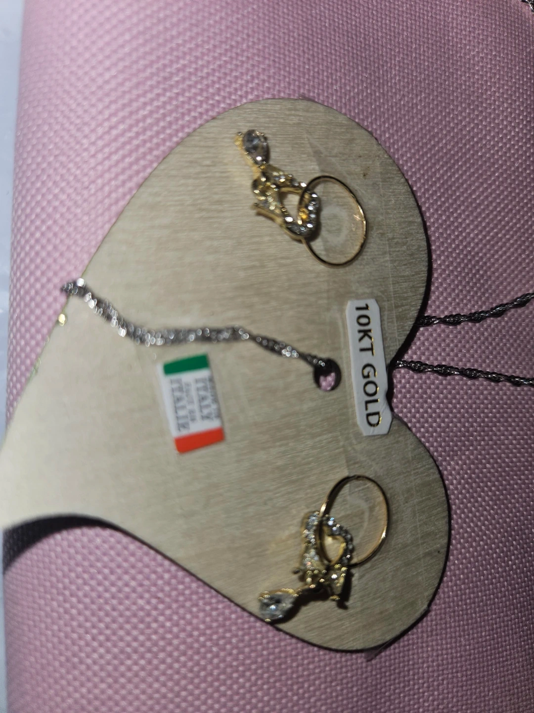 Here's a lovely 10KT gold earrings And S925 Italian silver necklace features a unique pendant with brown Australian Crystals stones, and the earrings have a delicate design with small stones. They're both in great condition and ready to add a touch of elegance to any outfit.