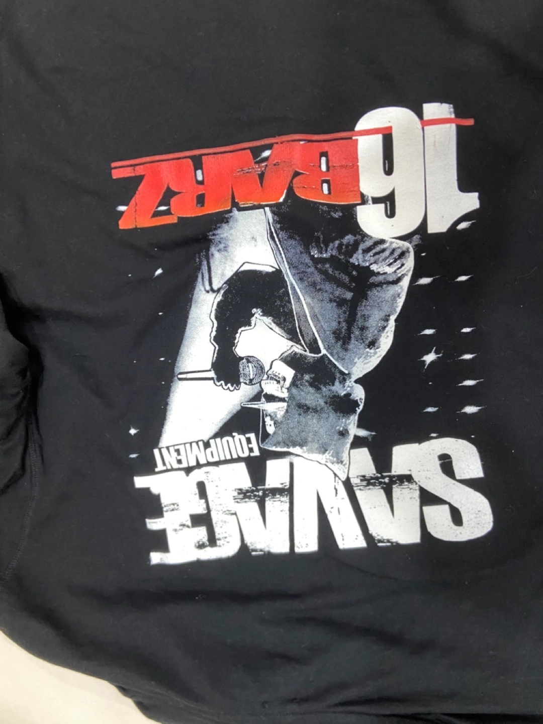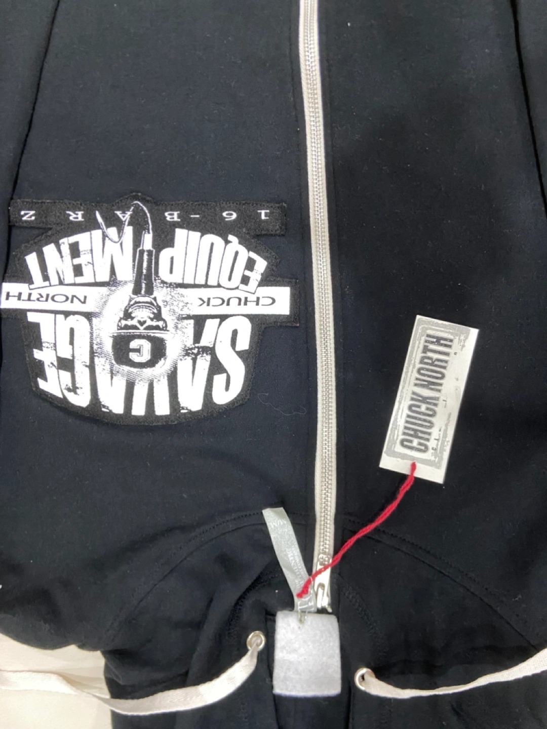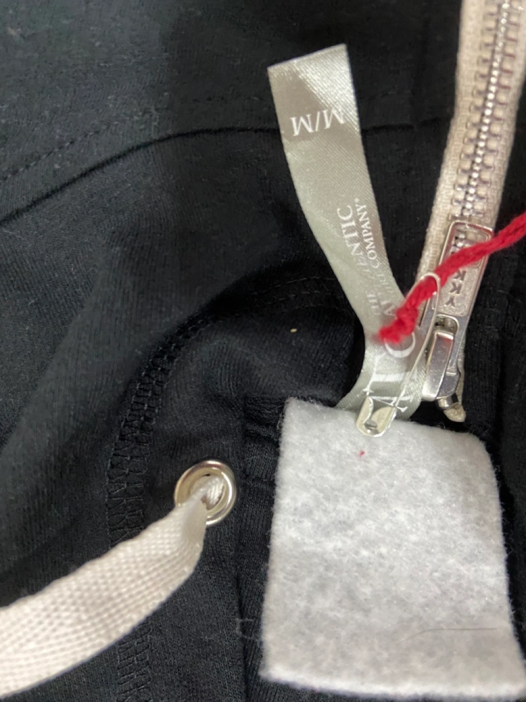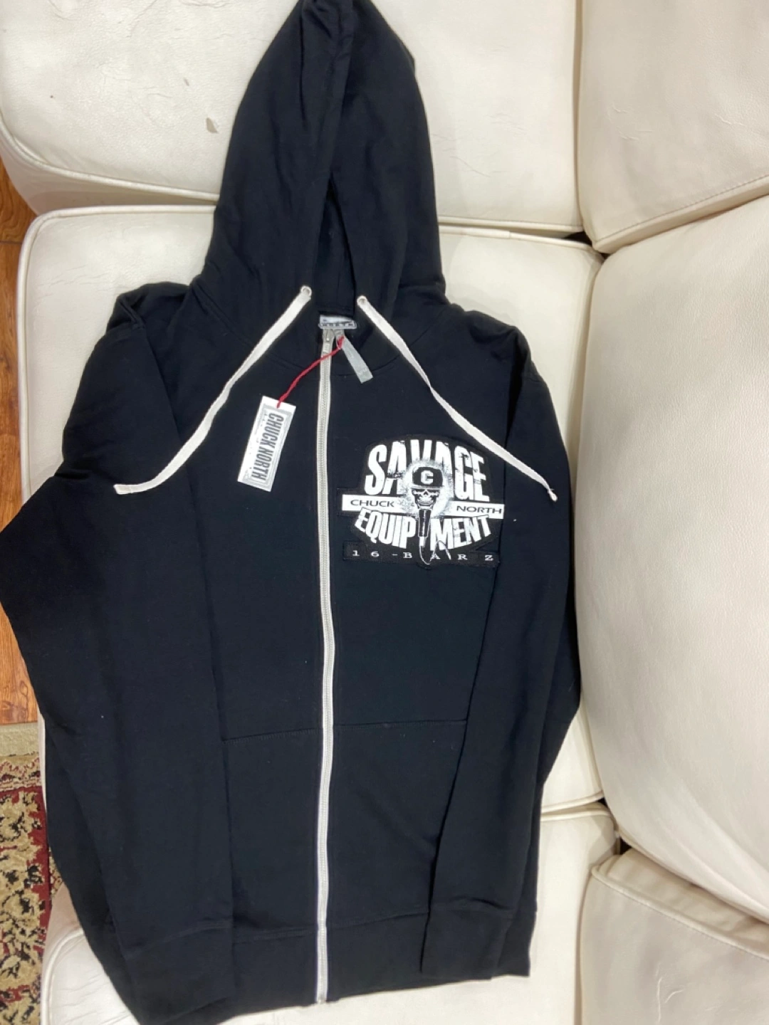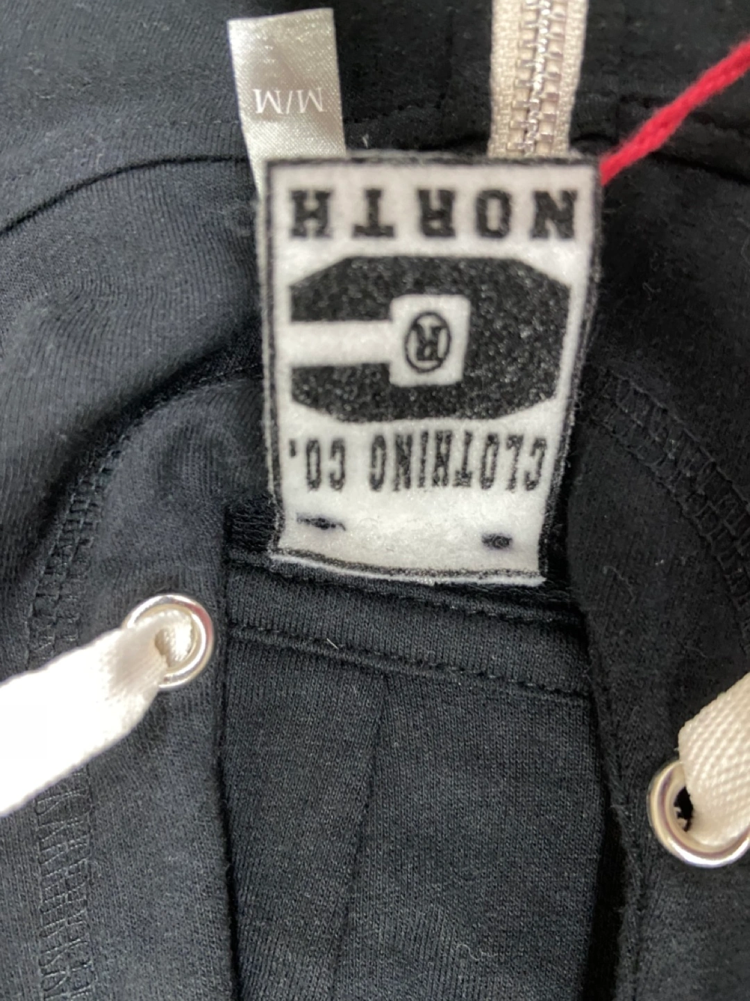 Black zip up hoodie with a white graphic on the front. Size M to large not very thick material