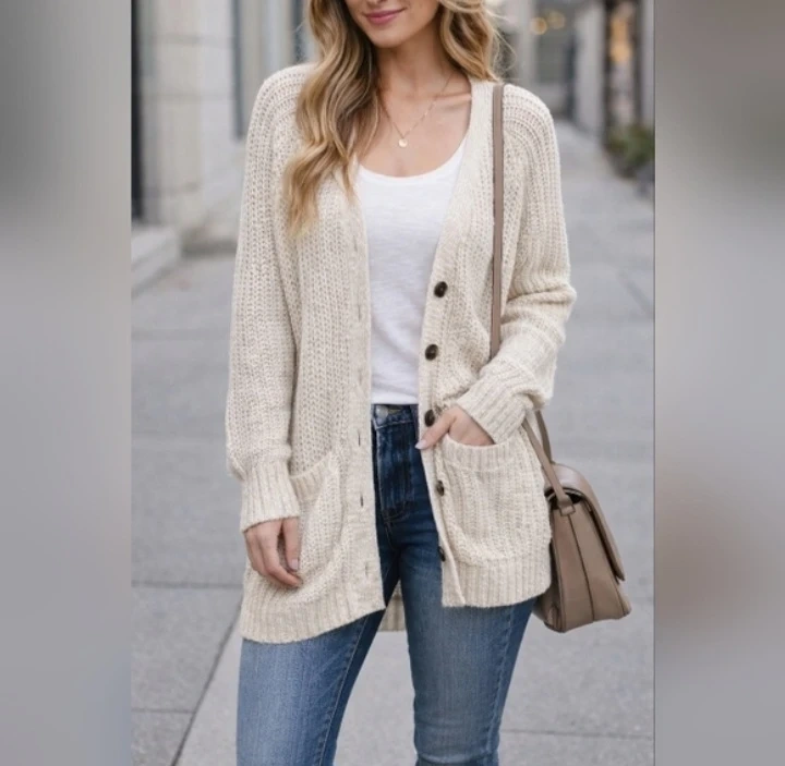 Bluenotes Cream Knit Cardigan Sweater - Size S/P