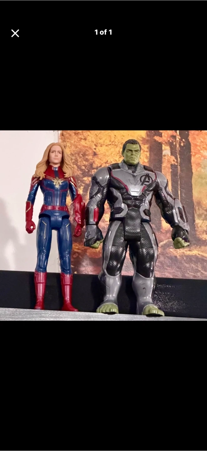 These are Marvel Avengers action figures featuring Captain Marvel and Hulk. They are detailed figures ready for play or display. Perfect for any Marvel fan's collection!