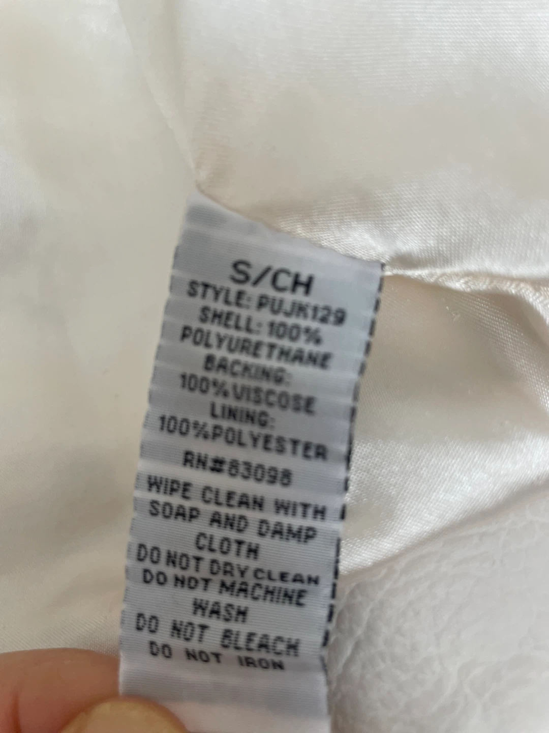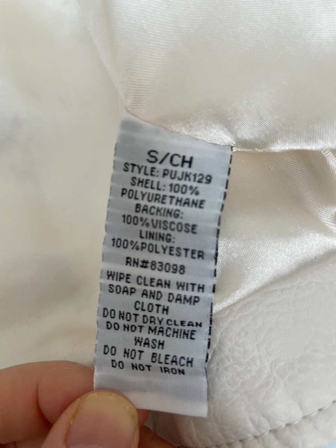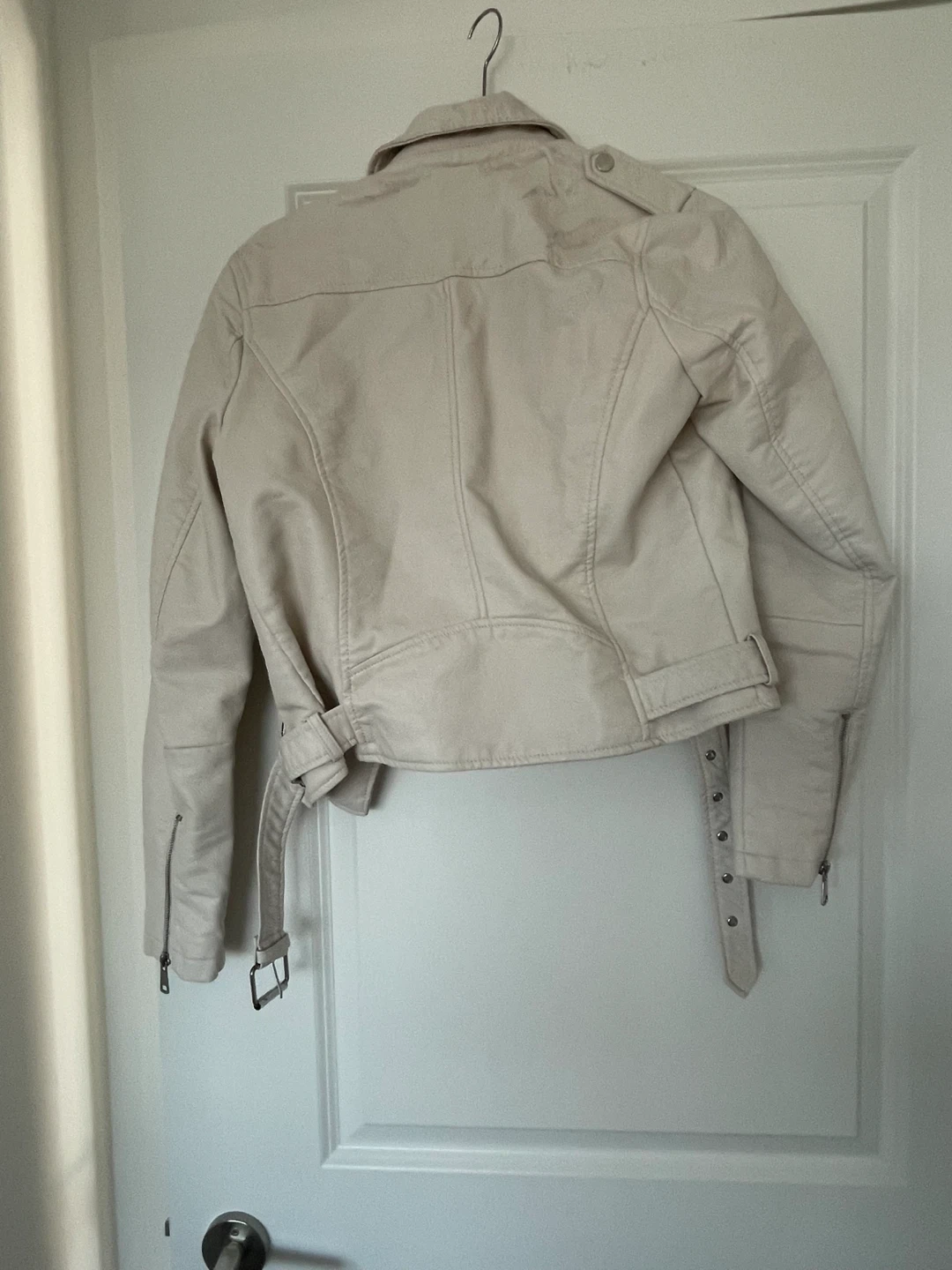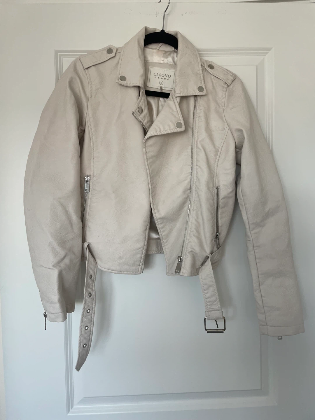Selling a Ci Sono biker jacket in a lovely cream colour! It's a size small and made with a shell of 100% polyurethane, backing of 100% viscose. It's in a new condition and ready for a new home!