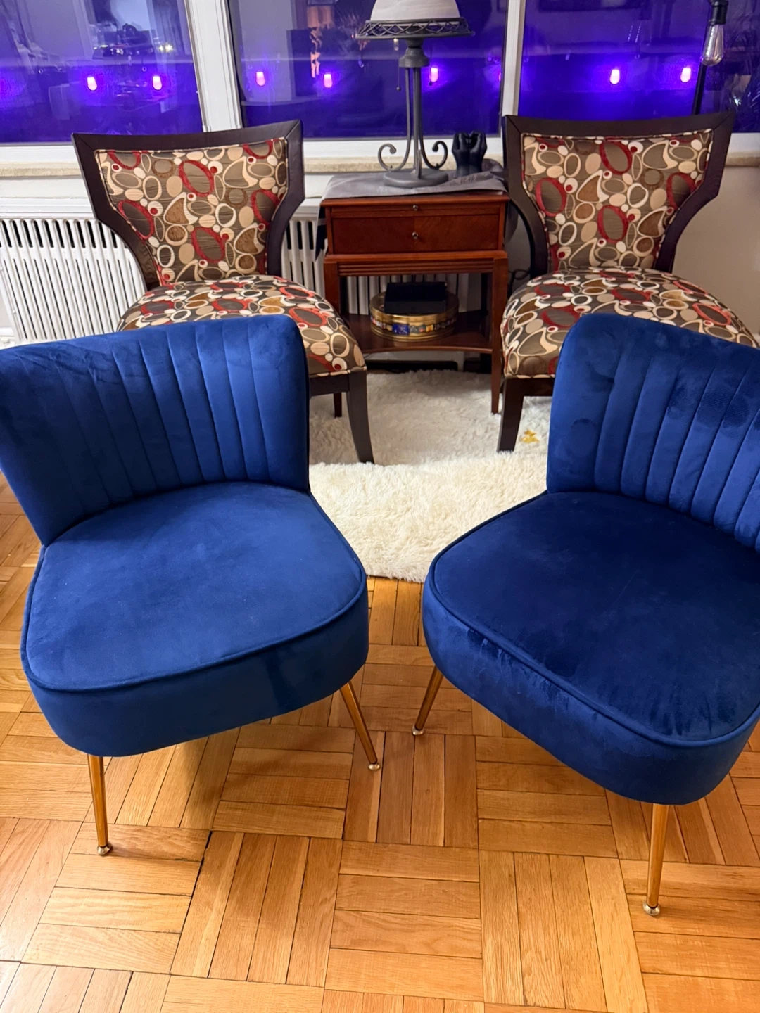 2 x Blue Velvet Accent Chairs