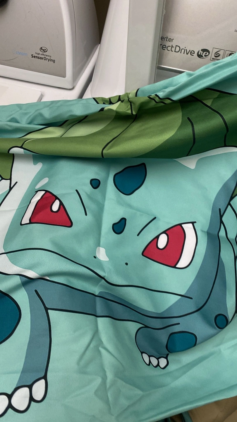 Brand new / washed once Bulbasaur themed bedding set. Includes duvet cover, fitted sheet (brownish beige), and standard pillowcases. Washed it and found out I completely bought the wrong size. Believe this fits a queen
