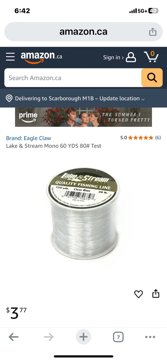 Selling four spools of Lake & Stream Quality Fishing Line:
