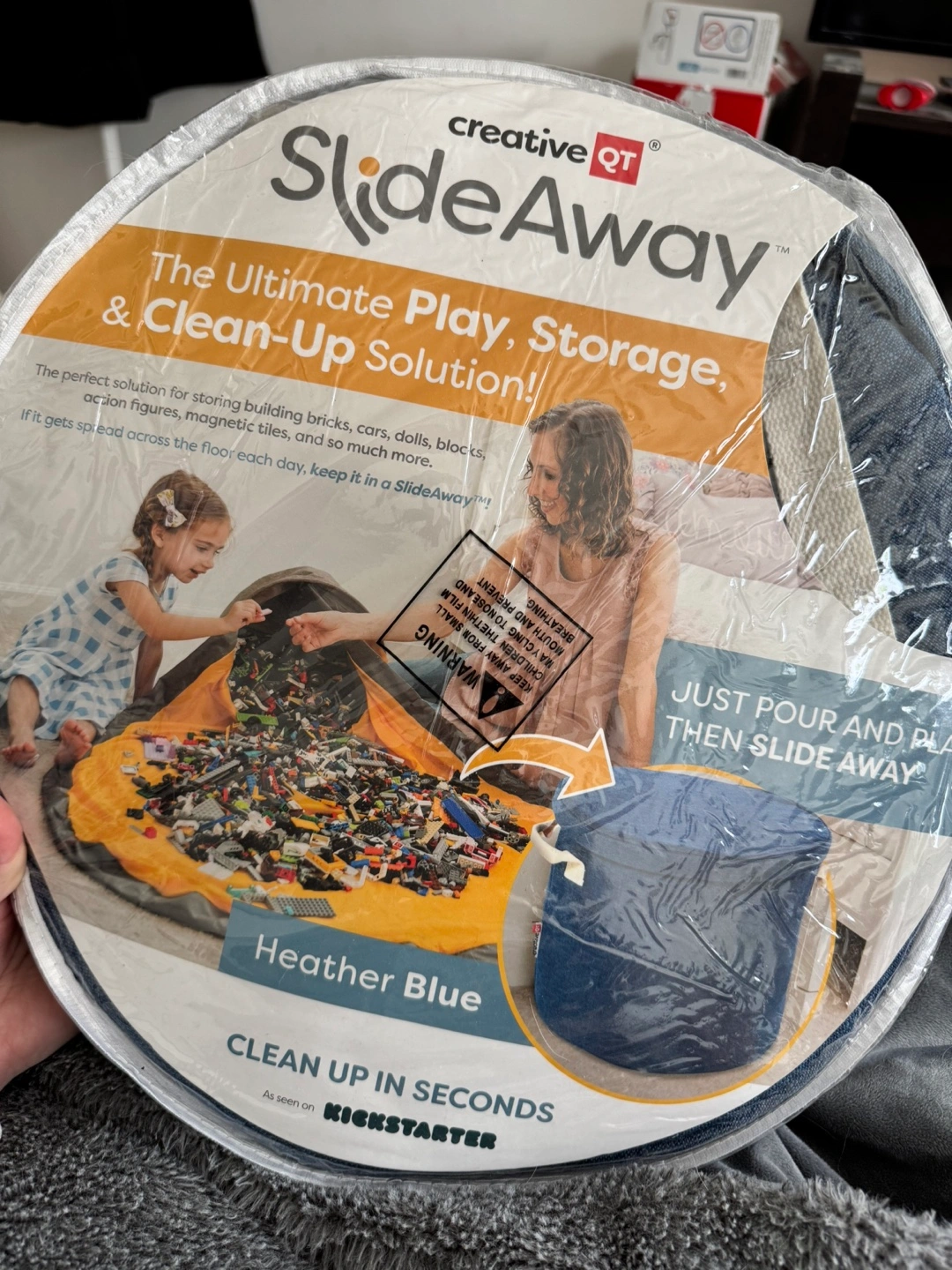 SlideAway Toy Storage Basket and Play Mat -Blue
