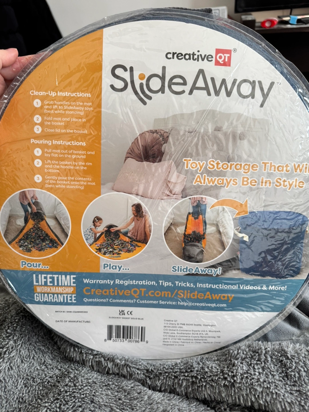 SlideAway Toy Storage Basket and Play Mat -Blue