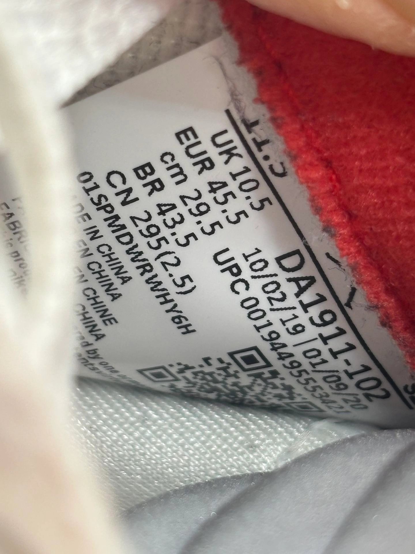 Men's size 11.5. Clean condition, with a flaw around the toe box. Comes with a replacement box. Let me know if you have any questions.