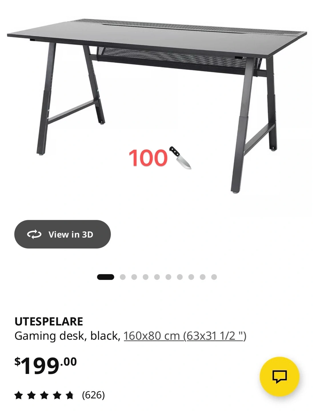 Buy & SellUTESPELARE Gaming Desk - Black, 160x80 cmUTESPELARE Gaming Desk - Black, 160x80 cm$100This is the UTESPELARE gaming desk in black. It's 160x80 cm (63x31 1/2 ") in size. Its mesh shelf provides convenient storage space.ConditionLike newDimensionsikeaWHERE TO MEETCheck LocationView MapSELLERverifiedSherryDowntown Toronto23418 reviews0 chats·0 favorites·16 viewsSEND CHAT TO SELLERHi Sherry! I’m interested in your listing.Hi Sherry! I’m interested in your listing.Get the Karrot app to chatSign In to chat