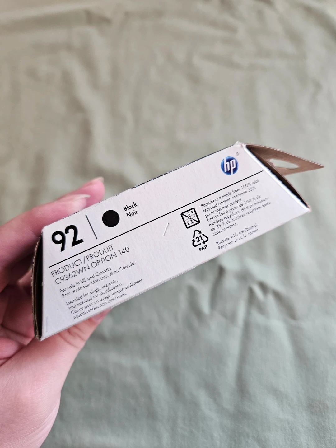 HP 92 Black Ink Cartridge C9362W - New Open Box
