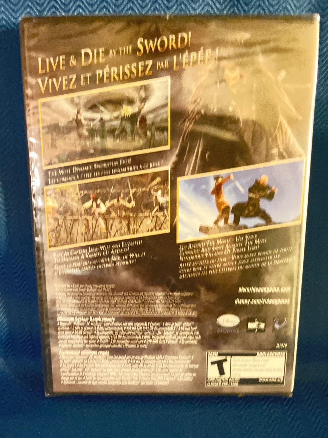 This PC game is Pirates of the Caribbean: At World's End. It requires a DVD-ROM drive to play. This game is rated T for Teen.