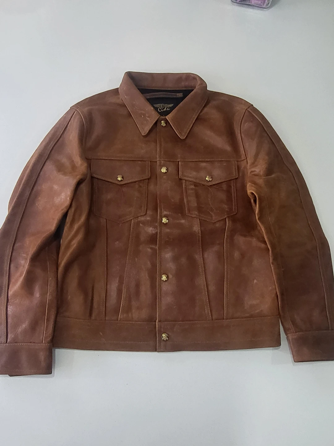 Men Genuine Leather Jacket Vintage Brown 100% Cowhide Coat Man Slim Fashion Clothing Asian Size