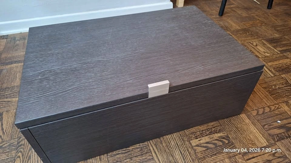 Has a lift-up door with high-quality soft-close/stay-open hinges and a minimalist silver handle.