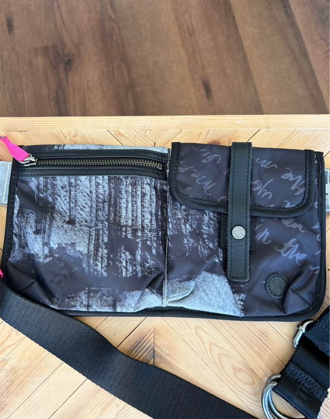 Selling a Lululemon belt bag in a stylish black and grey pattern! It’s in great condition and ready for your next adventure. Perfect for keeping your essentials close at hand while on the go