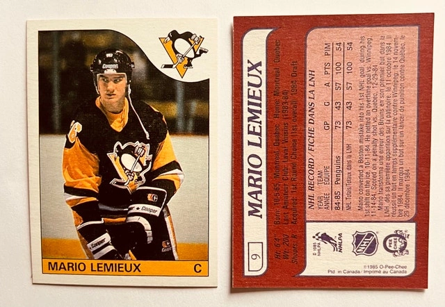 For fun, here are affordable REPRINT rookie cards of Wayne Gretzky (1979) and Mario Lemieux (1981). $20 for both, or $12 each. Pick up in Burlington.