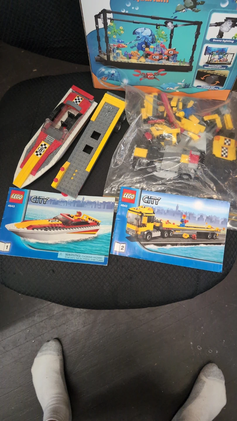 Selling a Lego boat and truck set. It looks great and lil assembly left..all the pieces are included! Great for kids who love building and playing with Lego toys