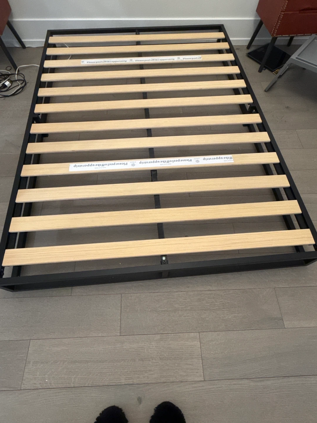 Black Metal Bed Frame with Wood Slats