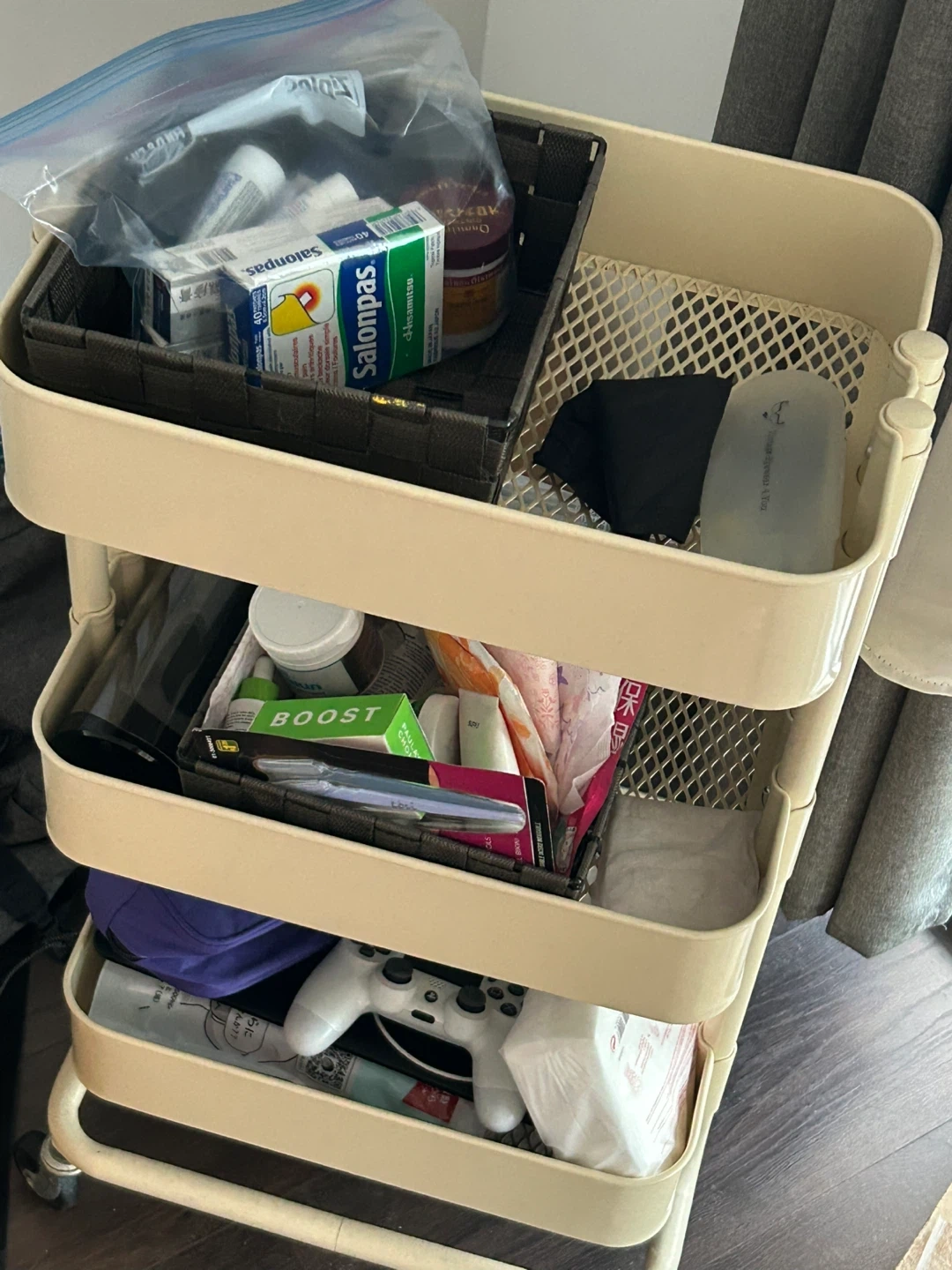 Selling a rolling cart. It's in good condition and ready for a new home! Perfect for organizing items in any room of your house