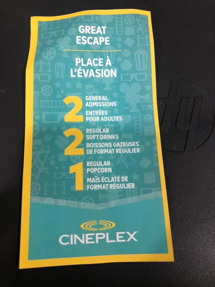 5Two General Admission tickets, Two Regular Soft Drinks, One Regular Popcorn. 36 dollar value