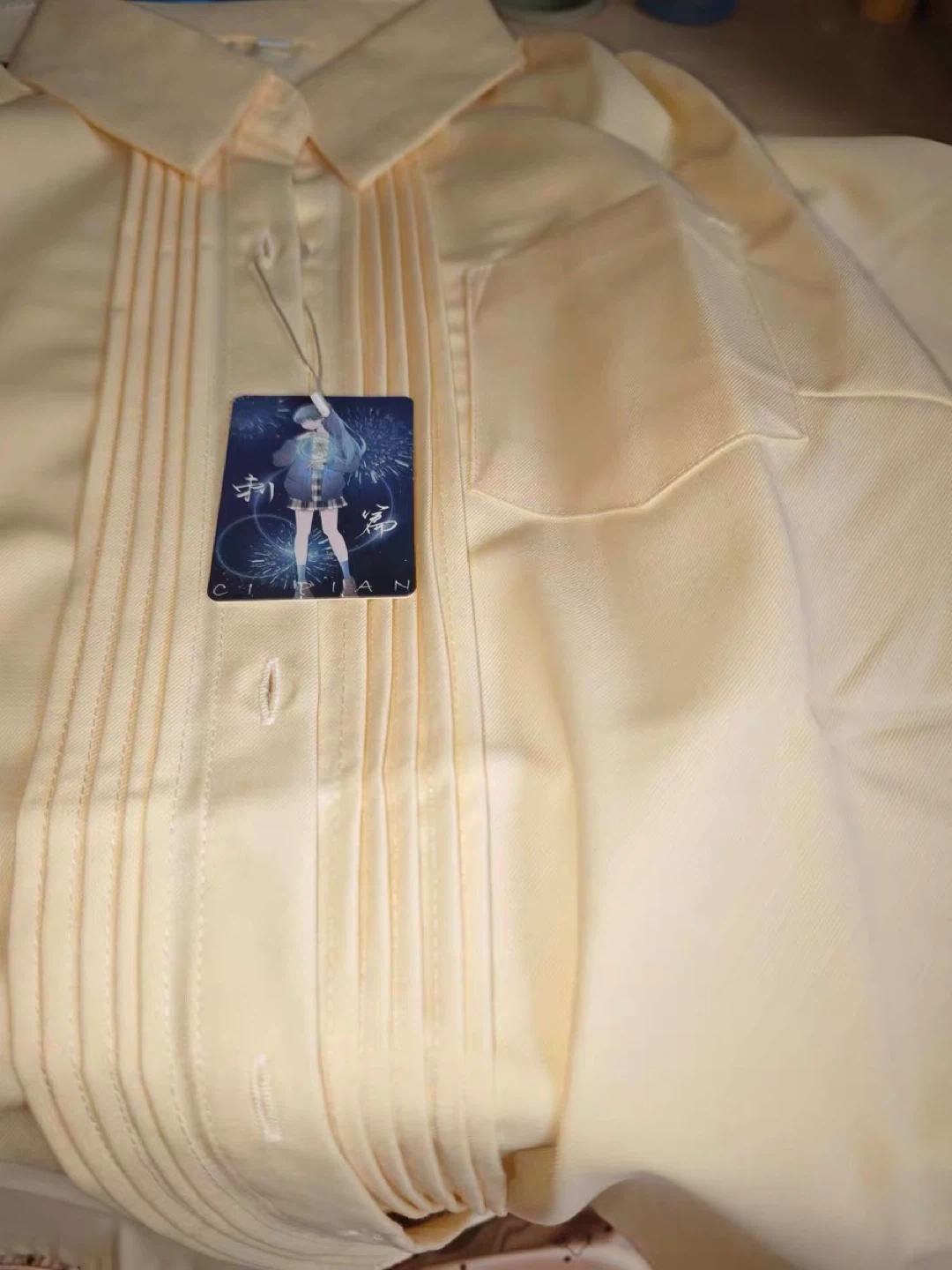 1000+This is a Cipian cream-colored blouse. It has short sleeves and a pleated front. Chest 104 cm Shoulder 40 cm