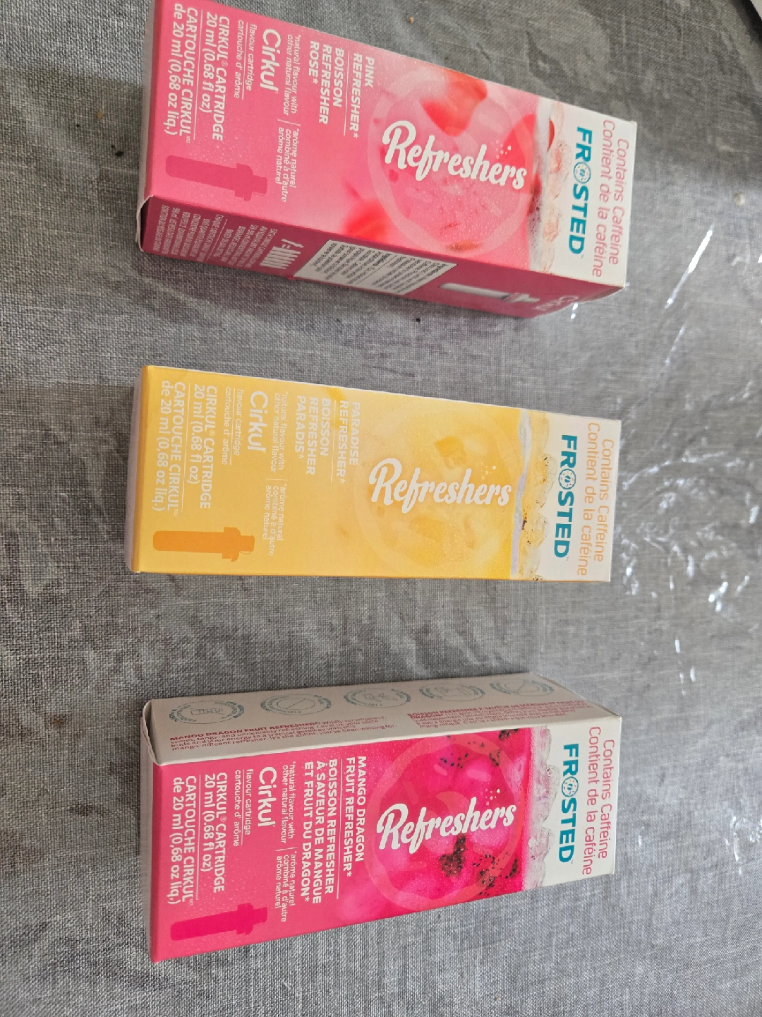 Selling a variety pack of Cirkul Refresher flavour cartridges! Includes Pink Rose, Paradise, and Mango Dragon Fruit flavours. Each cartridge contains 20 ml (0.68 fl oz) of flavour to add to your water. Perfect for adding a little flavour and caffeine to your day